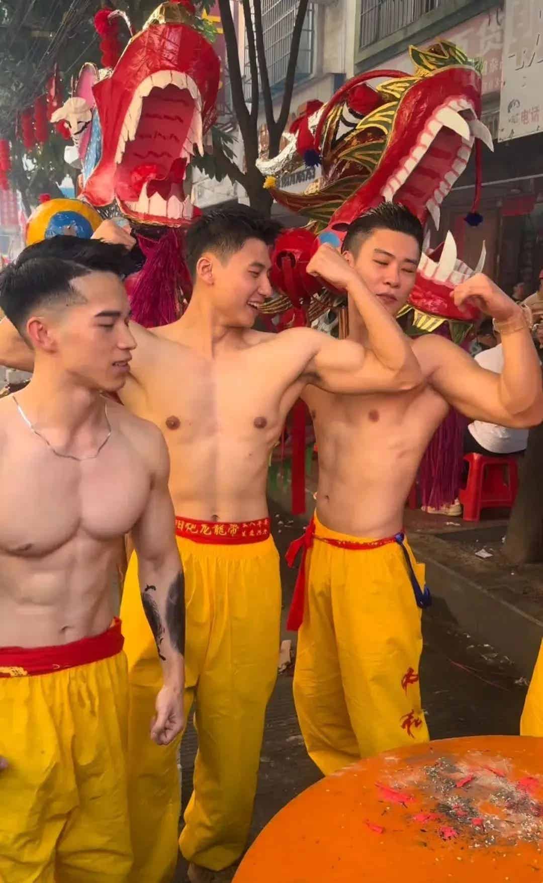 当炮龙节的锣鼓声响起,鞭炮噼里啪啦炸开,整个宾阳瞬间被欢乐点燃。在这人山人海中,耀yao和他的小伙伴们简直像自带光环,肌肉线条匀称,每一块都像是精心雕刻出来的艺术品。