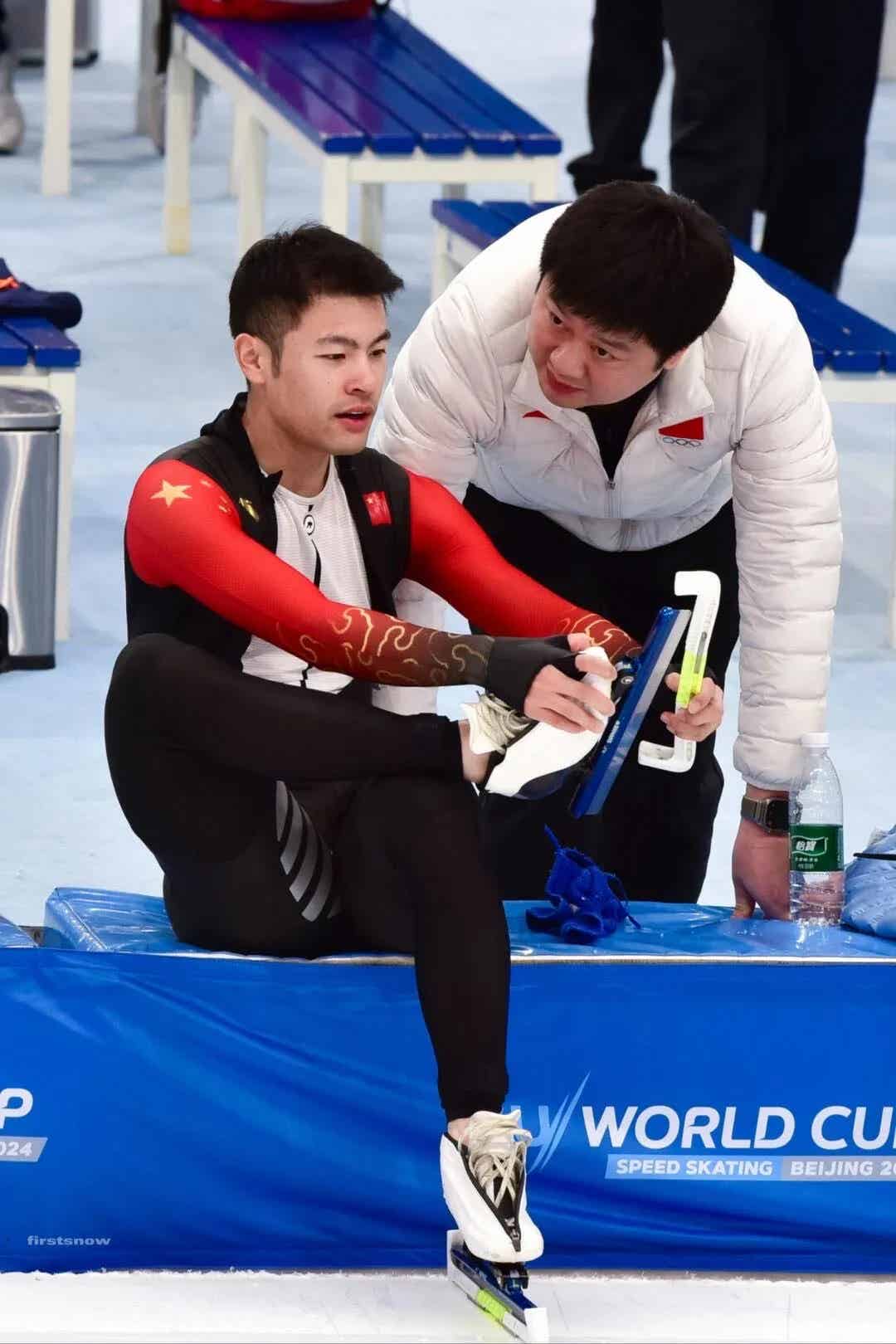 2017年,这一年成为了宁忠岩滑冰生涯的分水岭。师从冠军教练王秀丽并转攻中距离项目,这一决定犹如一颗投入平静湖面的巨石,激起千层浪。这一转项之举,仿佛是命运为他精心安排的一场华丽变身,瞬间为他的冰上之路安装了超级推进器。自此之后,他在冰场上的表现一路狂飙,像是开启了“开挂”模式。他轮廓分明的脸庞,高挺的鼻梁,深邃的眼神,搭配上冷峻的气质,简直就是霸总本总。