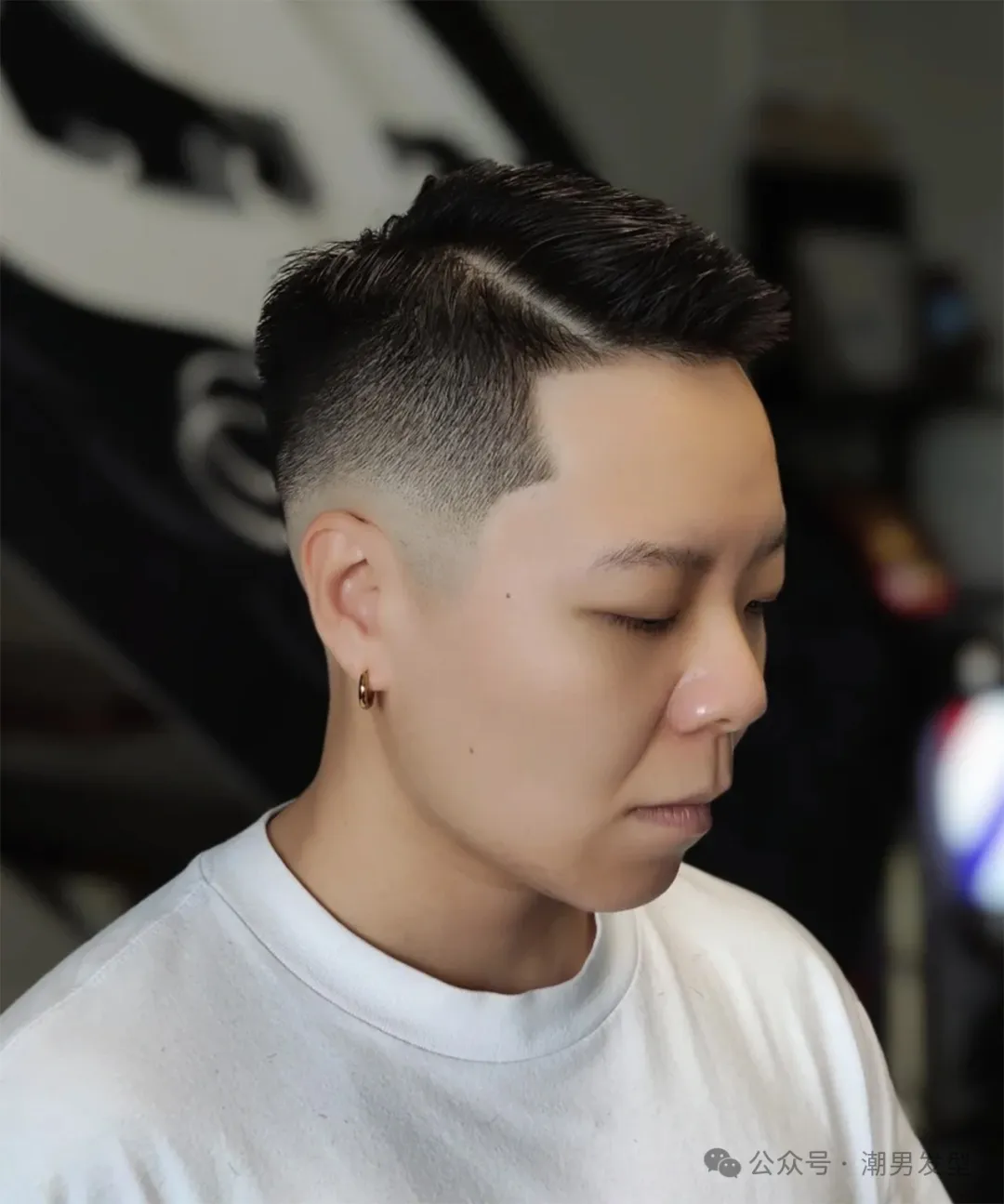 很多男生可能觉得背头发型过于成熟,不适合自己。但其实,如今的短背发型已经融入了更多的时尚元素,变得更加简约、有型。像上面这款短侧背就很好看,将头发剪短后往后面梳,并且简单抓出侧分的效果,这样的造型在展现出男生精致五官的同时,还给人一种轻熟帅气的感觉,时尚又有范儿!第三款:清爽上扬碎发