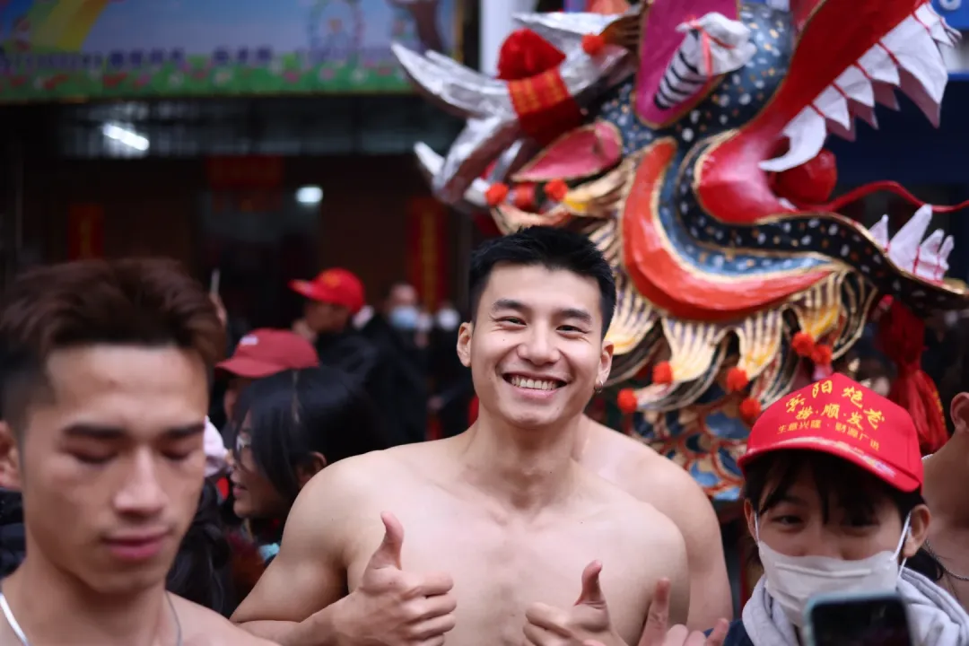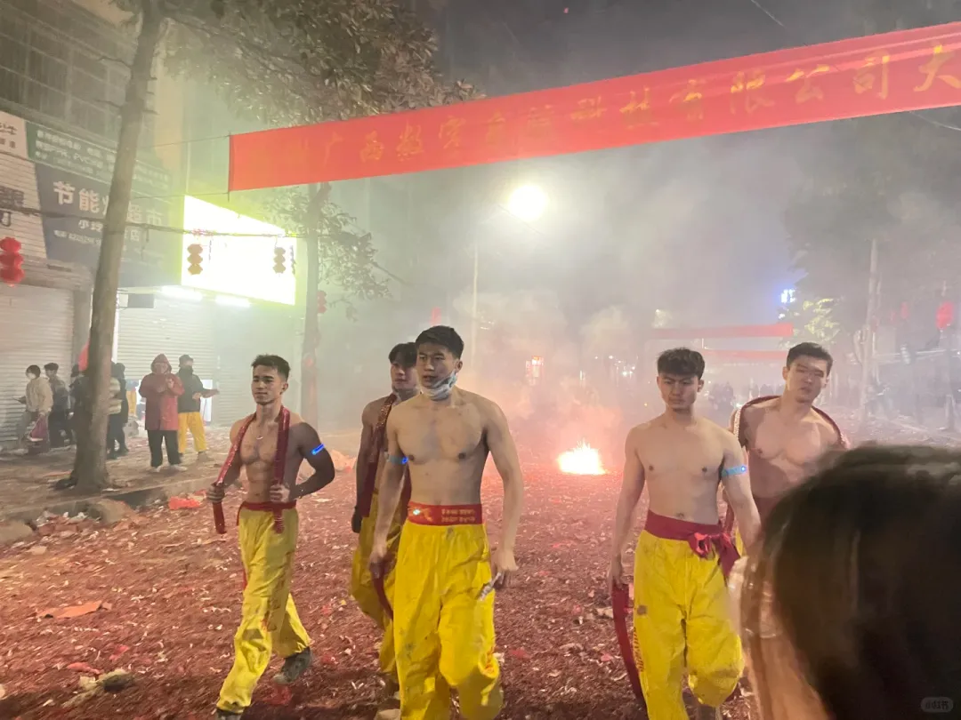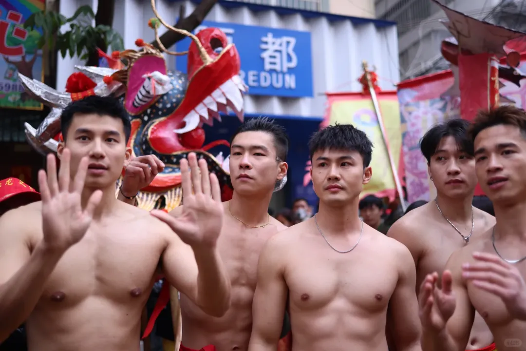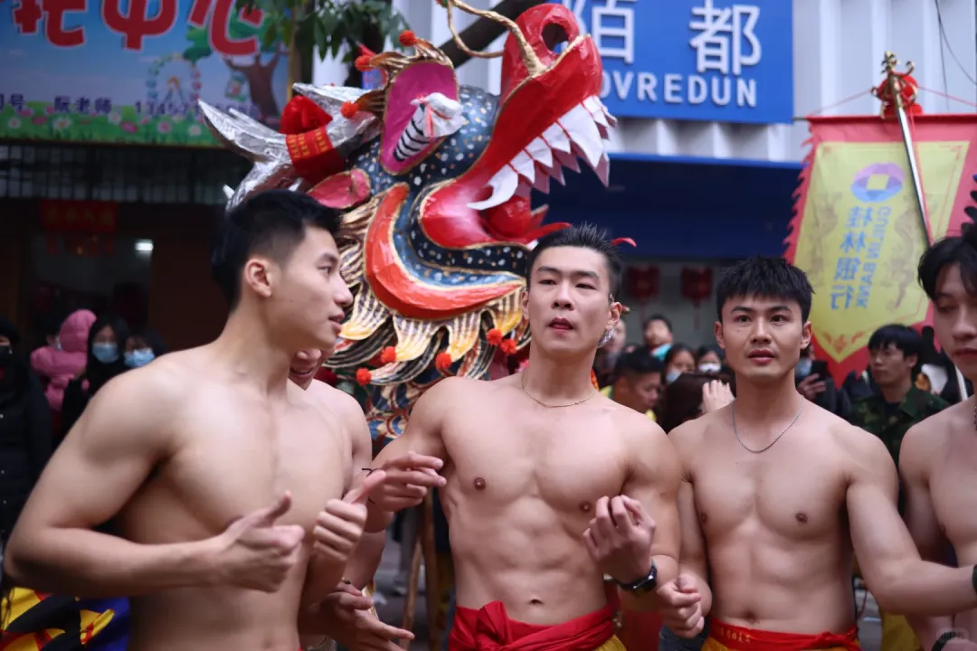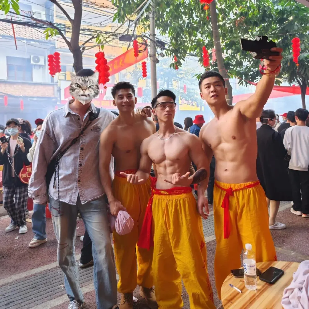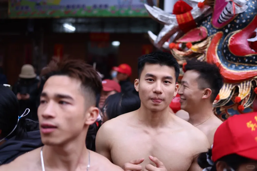 想象一下,街道上弥漫着鞭炮的烟雾,刺鼻却又充满着兴奋的气息。在这烟雾缭绕之中,一群光着膀子的小哥哥们开始舞动炮龙。他们的肌肉线条分明,每一块肌肉都像是蕴含着无尽的力量。他们在烟雾中若隐若现,如同神话中的勇士降临人间。这些小哥哥们,或许是当地的青年才俊,又或许是从远方归来的游子,但在这一刻,他们都化身为炮龙的驾驭者。