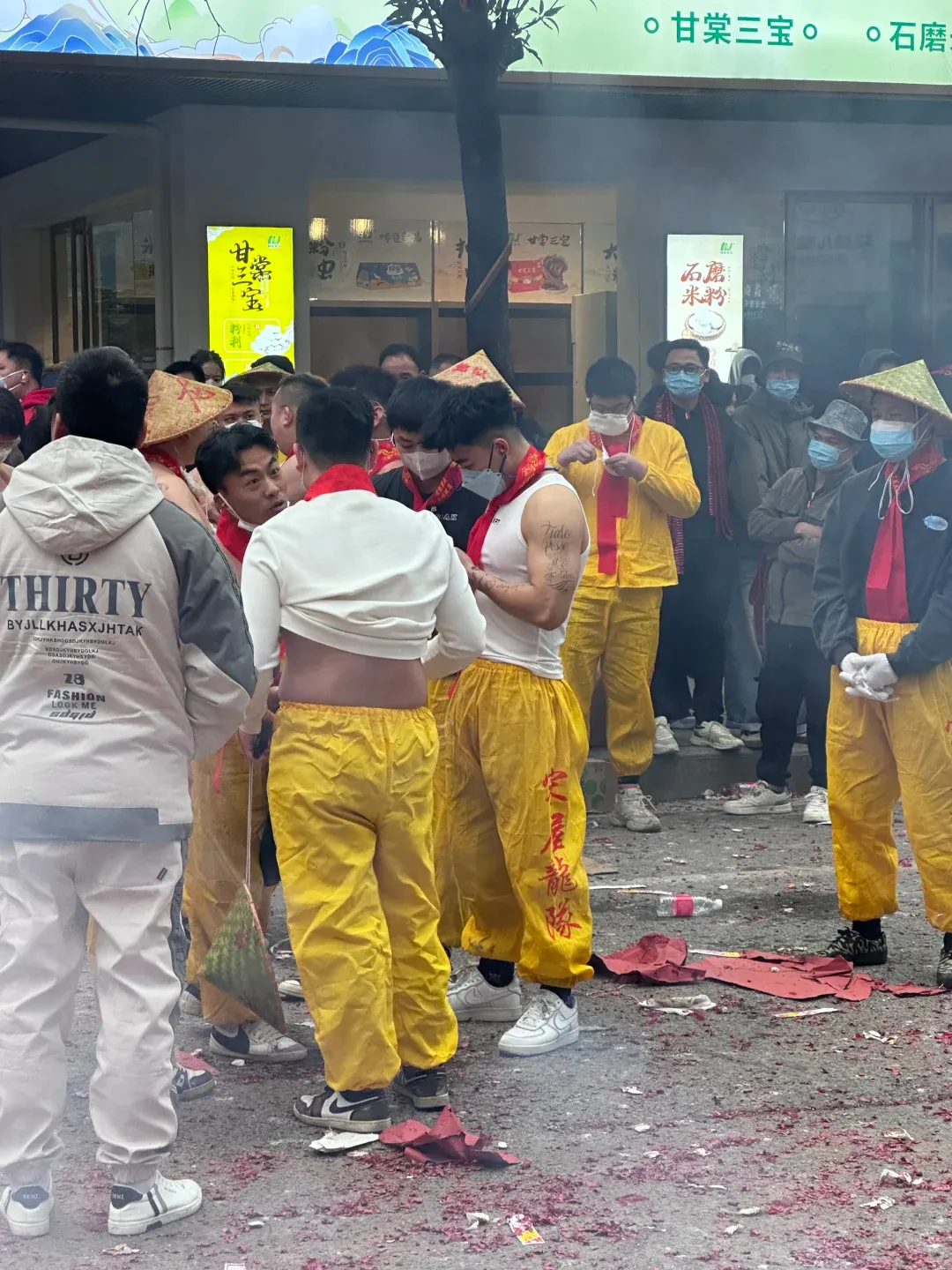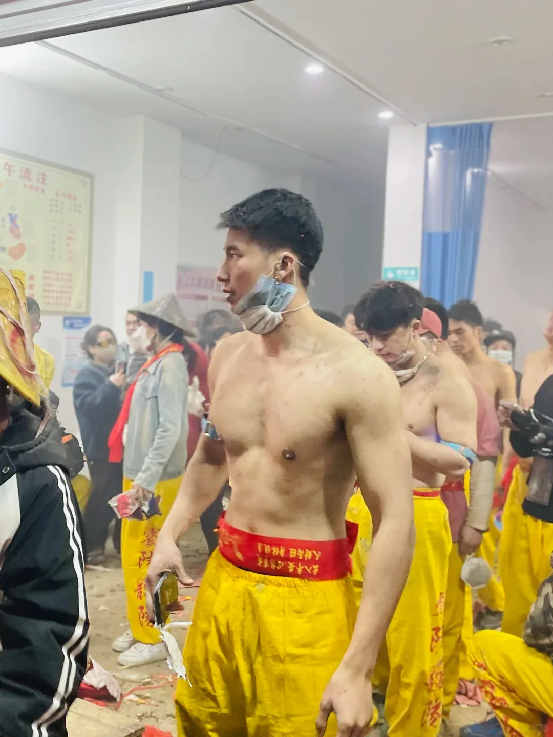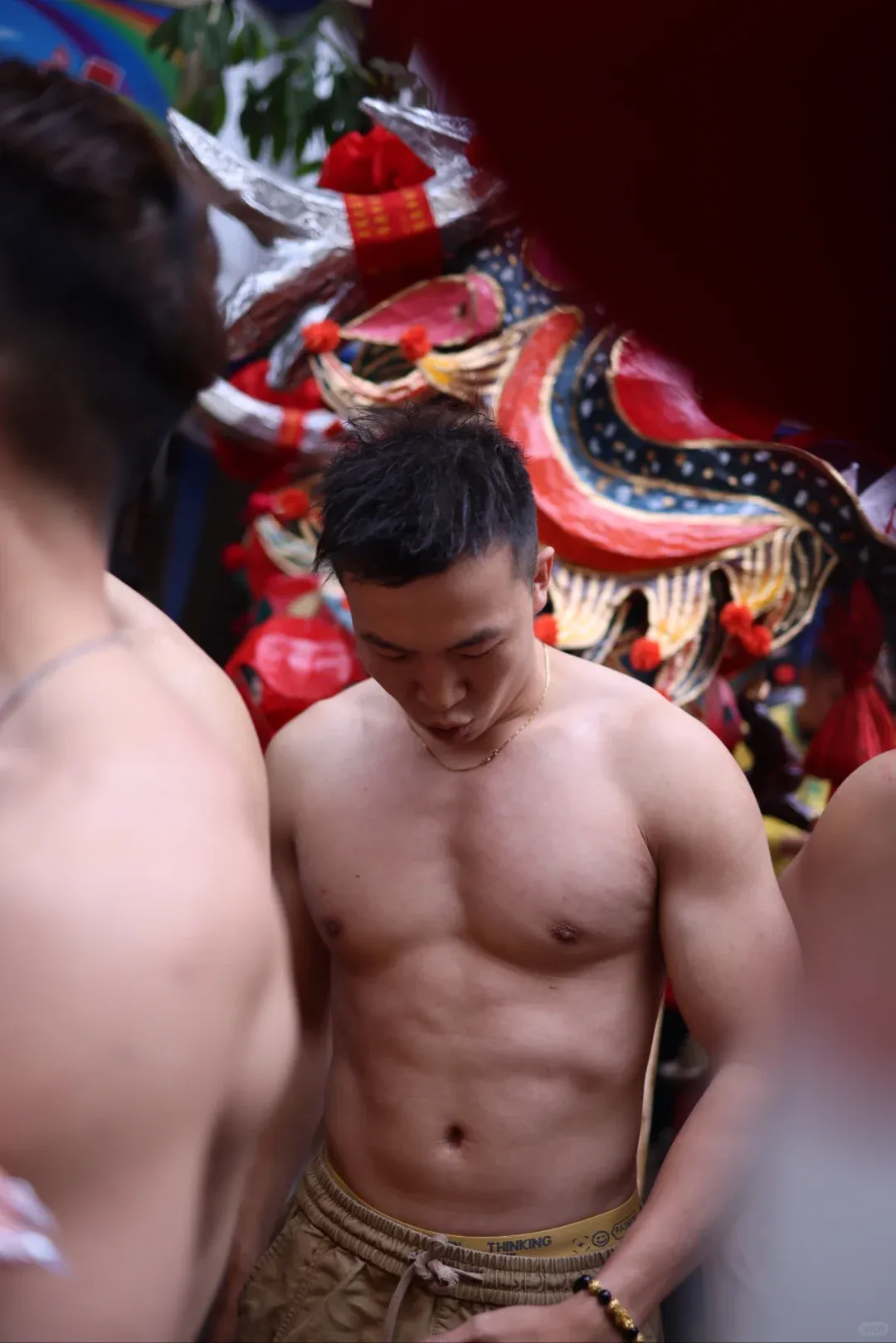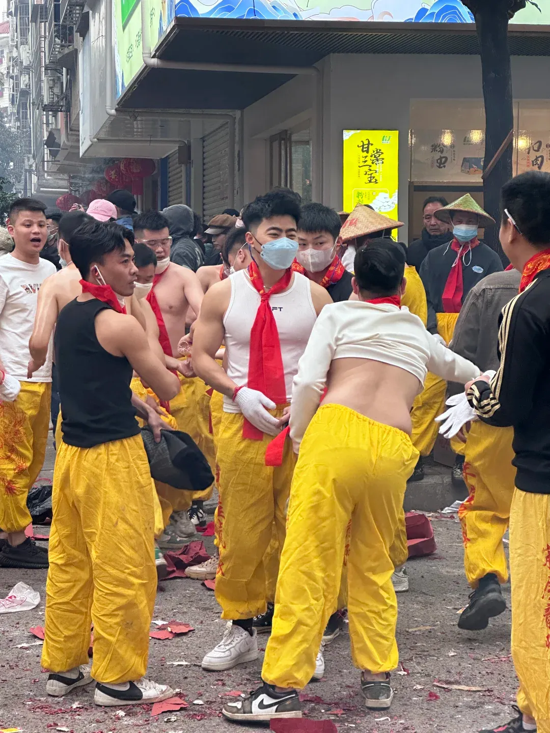 想象一下,街道上弥漫着鞭炮的烟雾,刺鼻却又充满着兴奋的气息。在这烟雾缭绕之中,一群光着膀子的小哥哥们开始舞动炮龙。他们的肌肉线条分明,每一块肌肉都像是蕴含着无尽的力量。他们在烟雾中若隐若现,如同神话中的勇士降临人间。这些小哥哥们,或许是当地的青年才俊,又或许是从远方归来的游子,但在这一刻,他们都化身为炮龙的驾驭者。