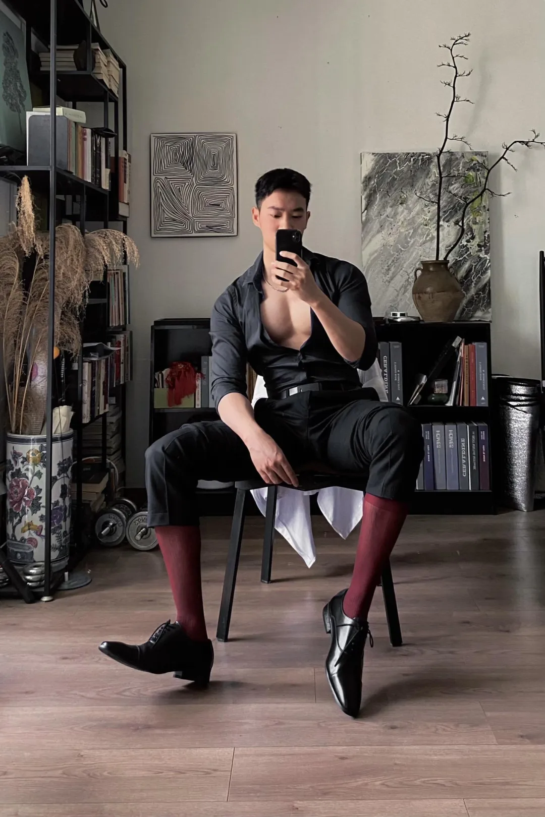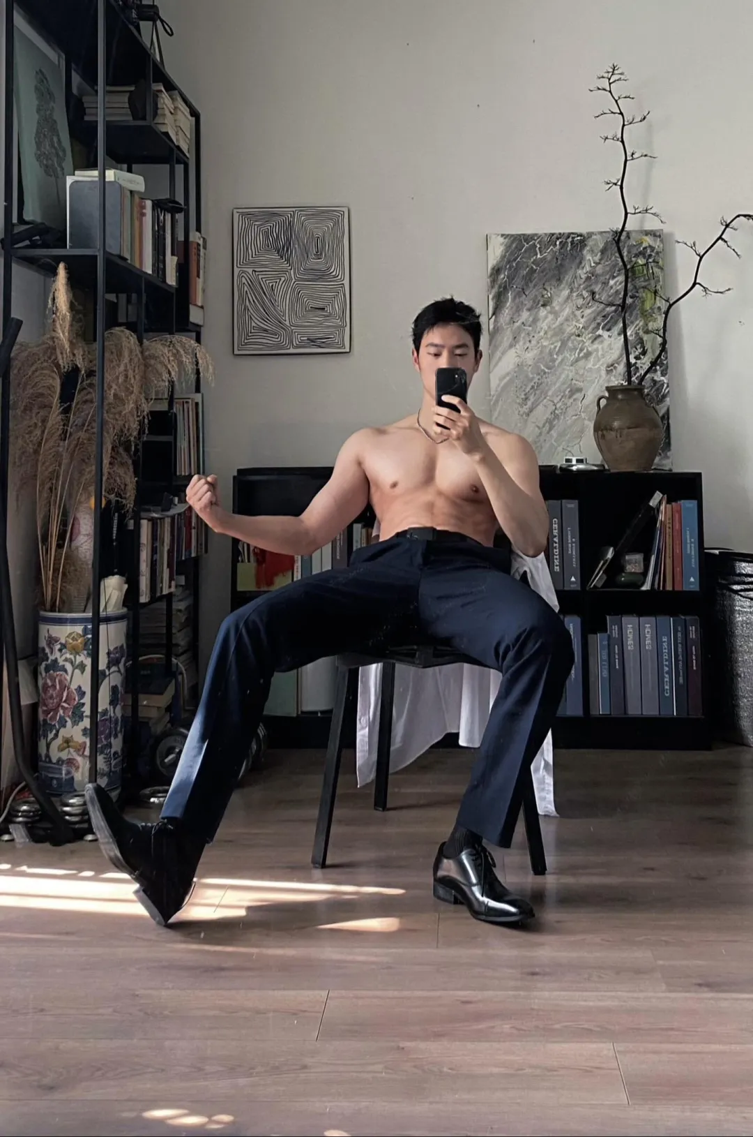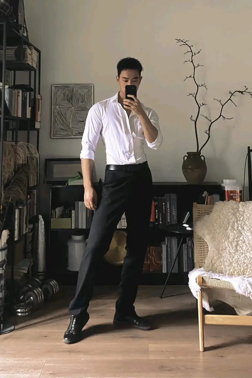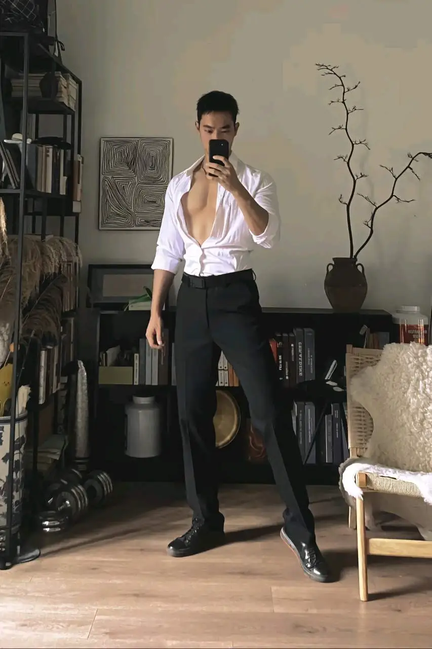 总有人问:"穿这么骚不怕同事议论?"佑璨见过太多男孩白天裹着不合身西装,晚上在更衣室对着镜子偷偷卷衬衫袖子。其实去除班味不用大动干戈,换个衬衫扣子或喷点木质调香水,那种"我认真收拾过"的自信劲儿就出来了。