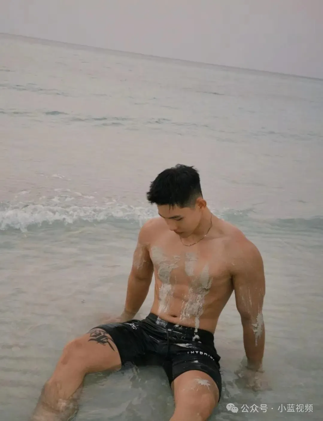 他在社交软件上发的那组泰国海边照,氛围感直接拉满!落日余晖下,他脏兮兮却痞帅痞帅地坐在海边,脂包肌的身材,运动后出的汗就像淋了场雨,整个人湿身的样子,荷尔蒙爆棚