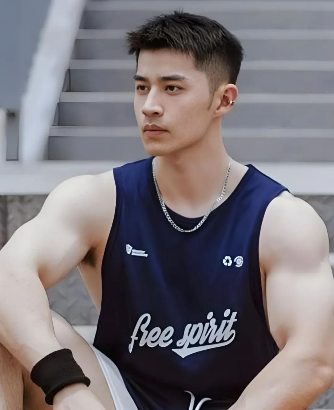 这款发型的特点十分鲜明,将两侧头发铲短,保留顶部头发并进行侧分处理。铲短的两侧头发能够有效减少闷热感,使整个头部看起来更加清爽利落,同时也凸显出一种简洁干练的气质。而顶部侧分的头发则增添了一份优雅与时尚感,显现体育生的青春活力!