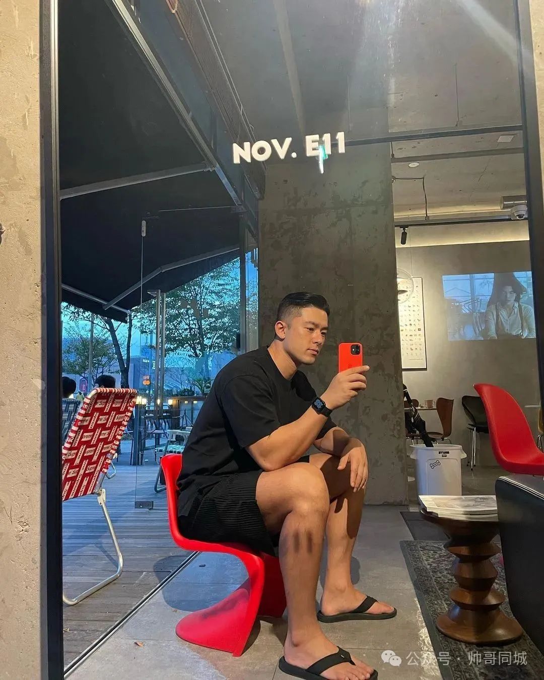 而且这些年他似乎不太注重穿搭了,出镜基本就是黑白灰的色调。他拍照还超爱岔开双腿,这个姿势真的很容易让人一秒抓住重点