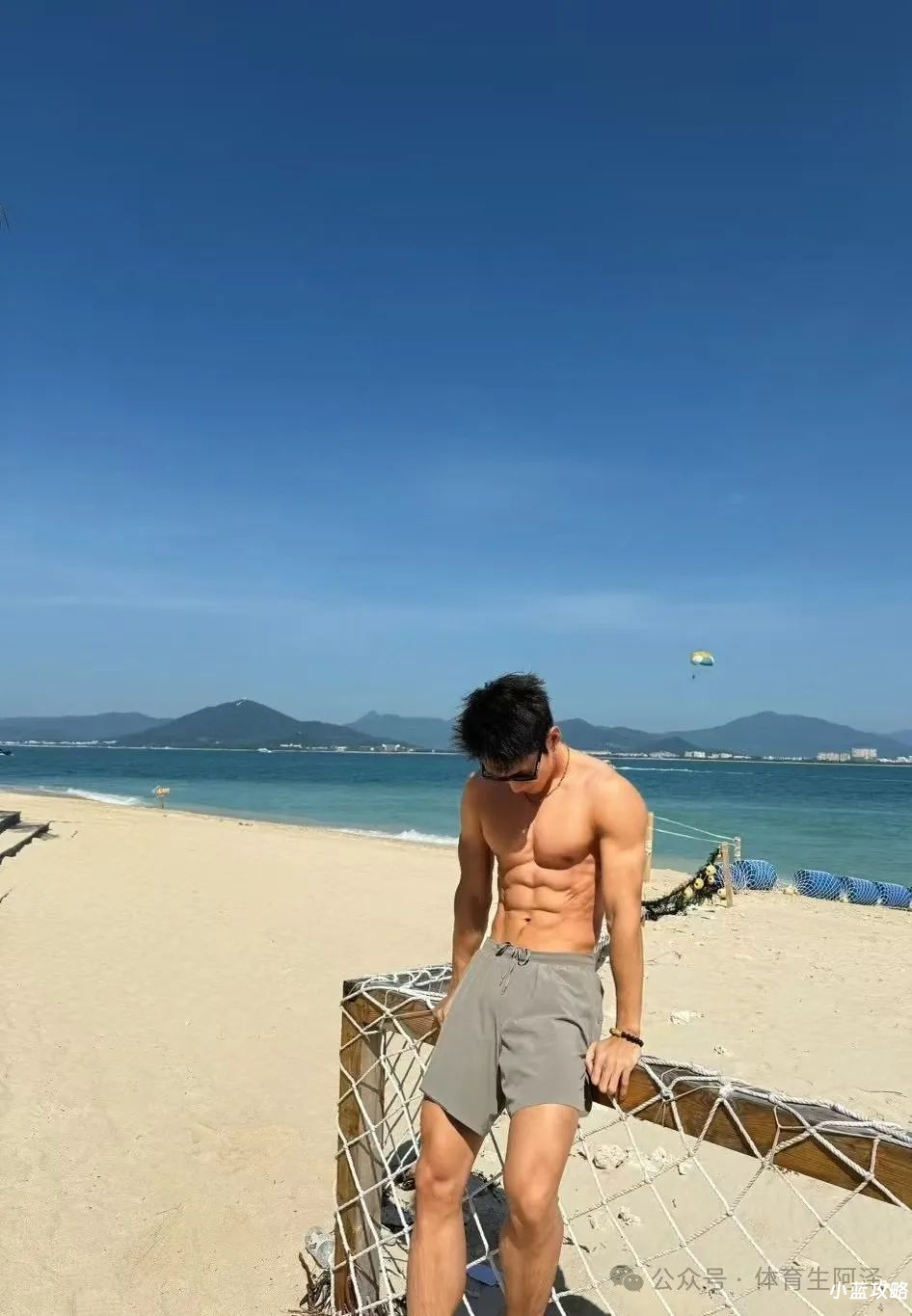 阳光下,他的皮肤是健康的小麦色,略带点儿阳光的温暖和自然的古铜色,搭配上这条运动短裤,展现了他身材最完美的一面。肌肉的曲线与光滑的皮肤形成鲜明的对比,那种性感的力量感,不仅仅是肉体上的吸引,更多的是一种源自自信和坚持的魅力。
