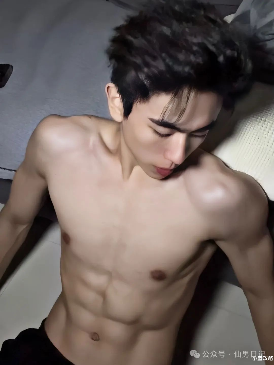 最后必须推一波小哥哥在床上的腹肌抓拍!肌肉和锁骨的绝美搭配!