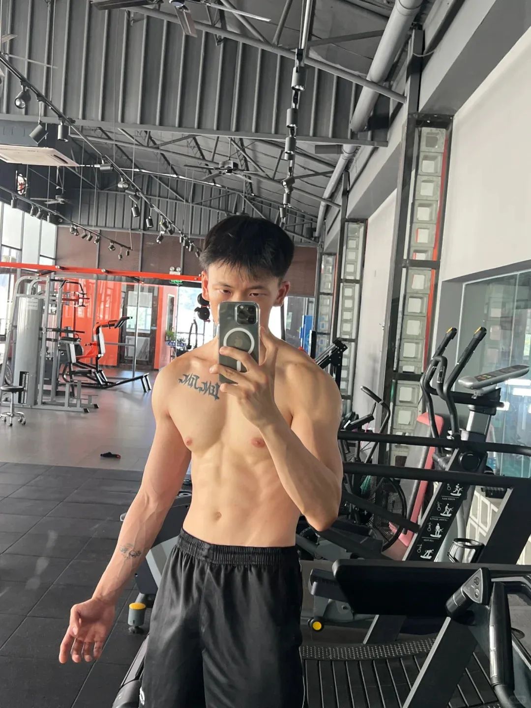 别看他日常大大咧咧,健身时可是一点不含糊。身材是那种紧致有线条感的薄肌类型,肌肉不过分夸张,但力量感十足,搭配上他的户外运动爱好,整个人更显得活力满满。冲浪、攀岩、徒步……没有他不敢玩的,阳光洒在他身上,像是天然的运动广告大片。