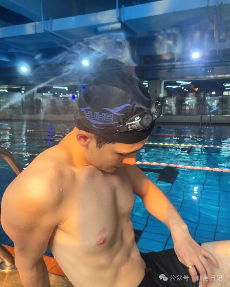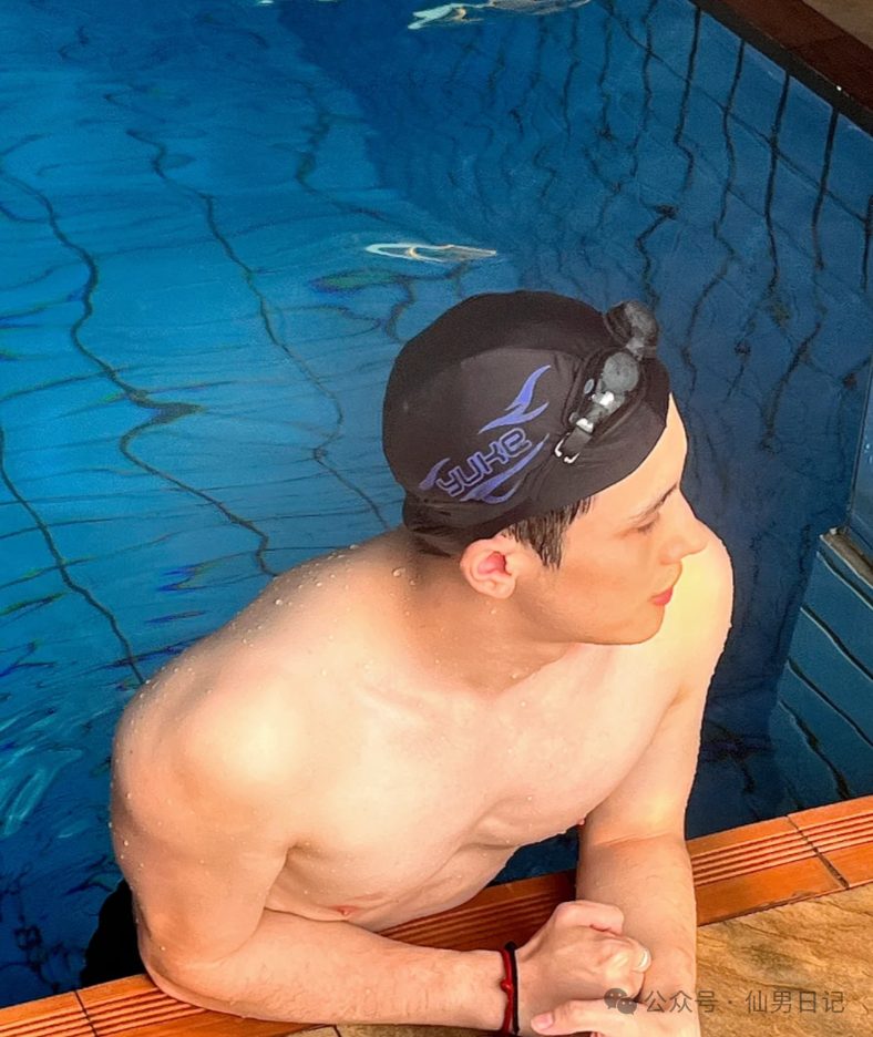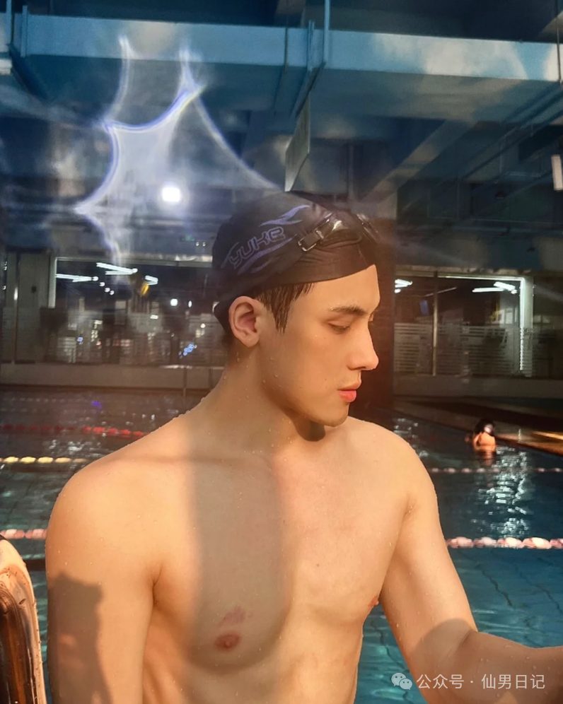 湿发搭在额前时像校园漫撕男,游泳时又化身禁欲系战神。