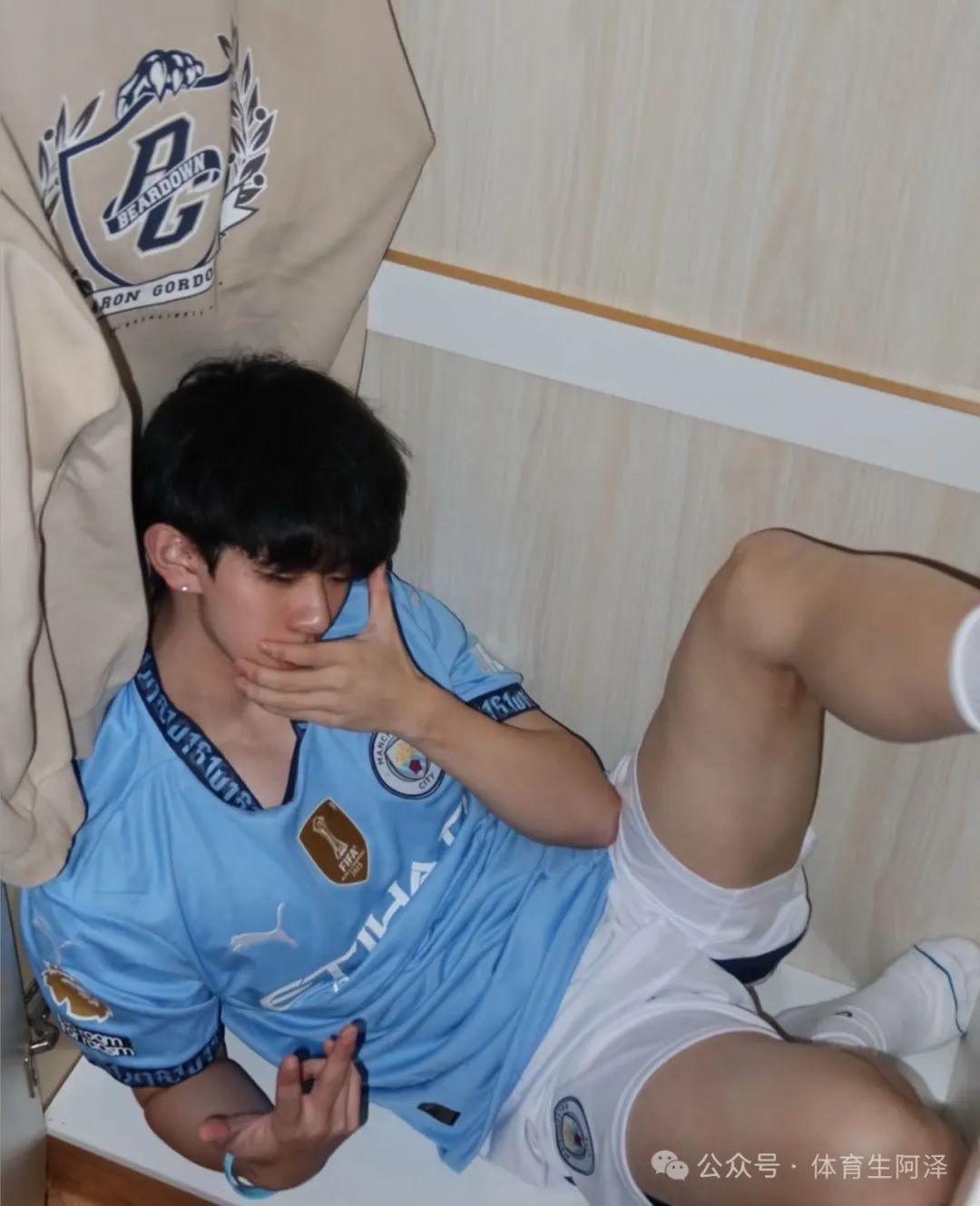 每次他坐在球场边换袜子,低头轻轻拉起白袜,露出小腿的肌肉线条,那一瞬间,空气仿佛都凝固了。学弟们在一旁偷看,心跳加速,根本移不开眼!