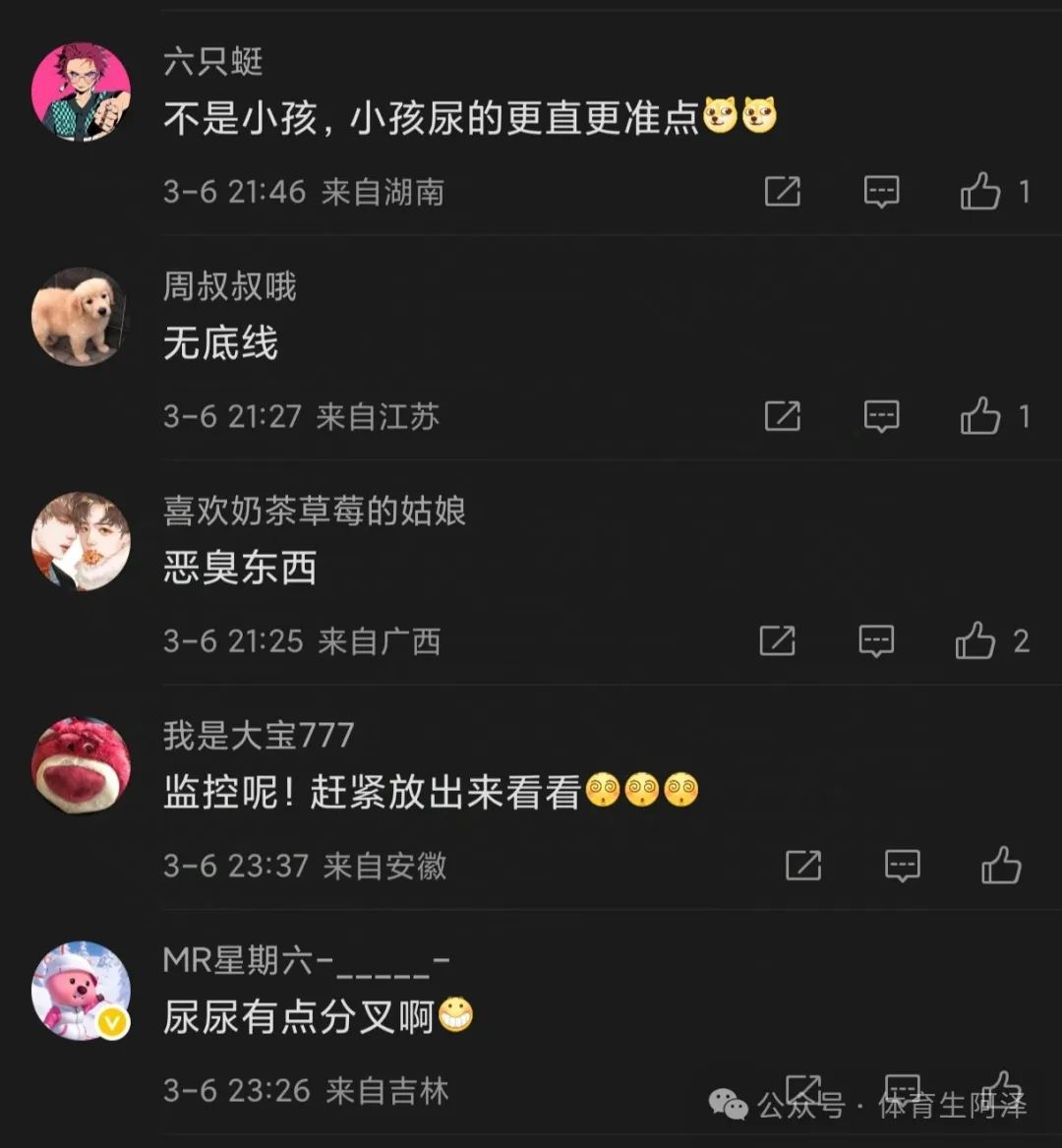 还有的奇葩开始分析男生的尿,为什么分叉了,阿泽看了也是震惊三观啊!这什么牛鬼蛇神都出来了。