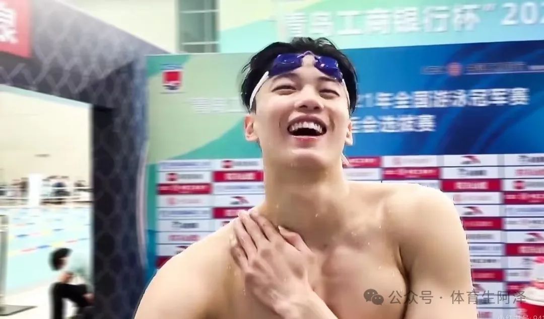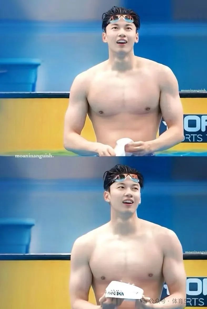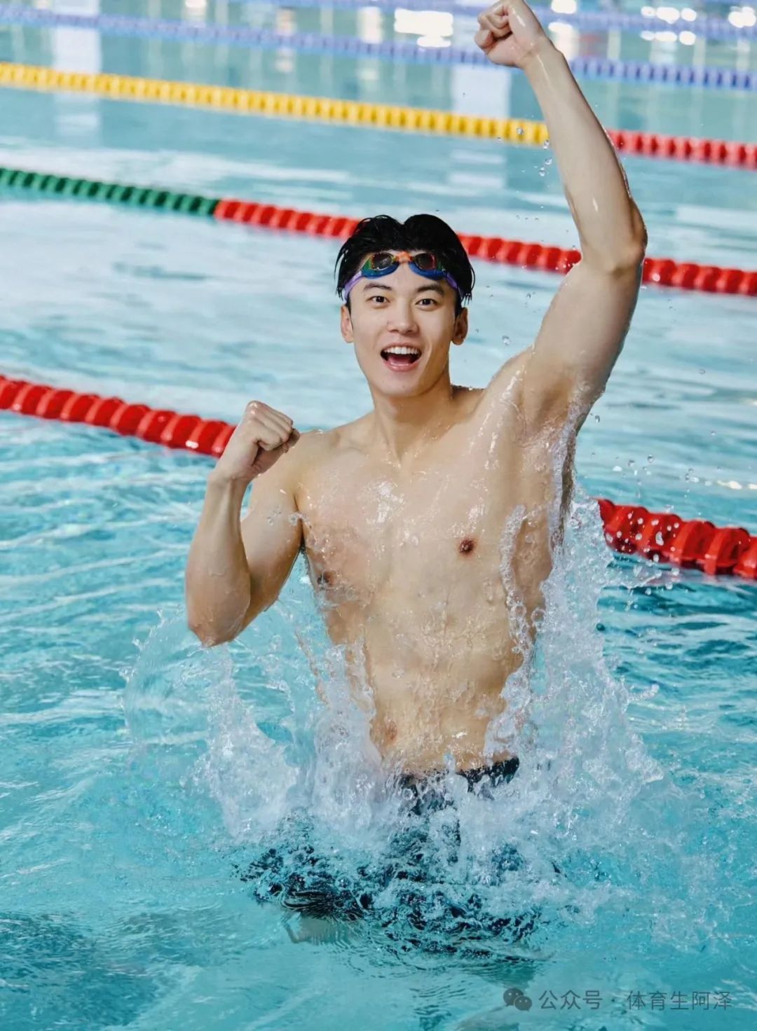 比赛时,他是专注的运动员,一旦戴上泳镜,眼神坚定,气场全开。可一到场下,他又变回那个爱笑的大男孩,和队友开玩笑,接受采访时憨憨的样子,完全就是“可盐可甜”的代表。
