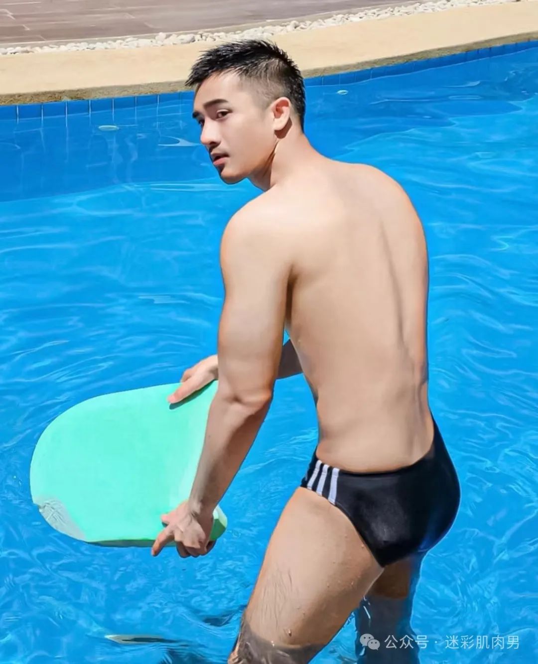 游泳是@peppeh.p的一大爱好,也是他保持身材的重要方式。穿上泳裤的他,身材线条更加明显,结实的胸肌、腹肌和手臂肌肉在水中显得格外有力。他的游泳姿势标准而优雅,仿佛与水融为一体,展现出一种独特的力量与美感。
