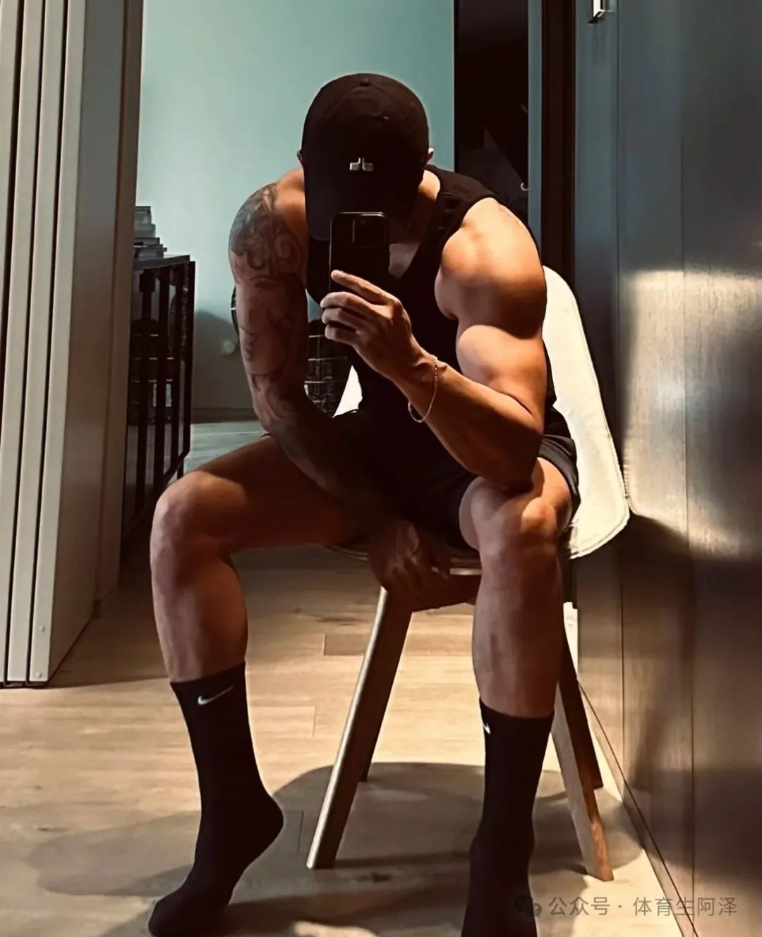 不论是黑色背心搭配宽松运动裤,还是直接上身紧身T恤,这类男人的身形都极具冲击力。宽肩窄腰,倒三角比例,走到哪儿都是一道风景。随意一站,双手插兜,微微低头看人,那种气场简直不要太强!