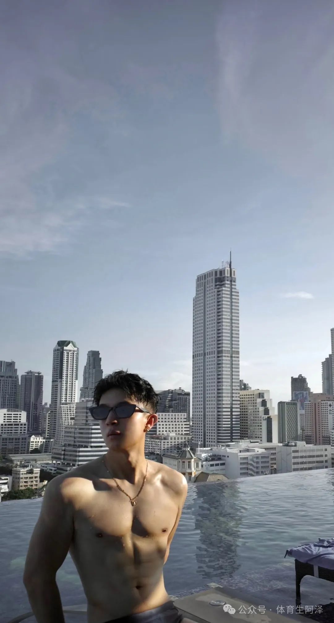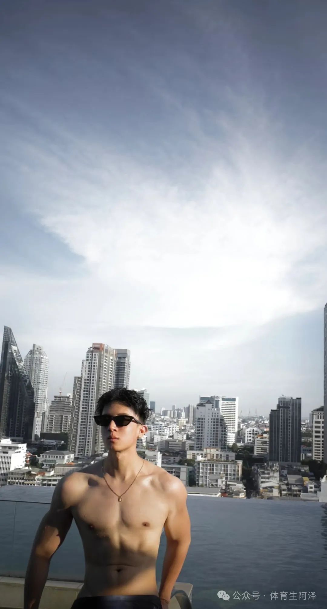 2. 饱满胸肌+完美腹肌,身材比例无可挑剔