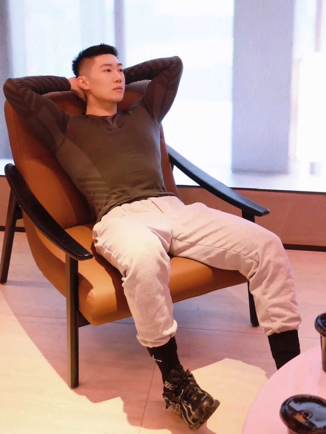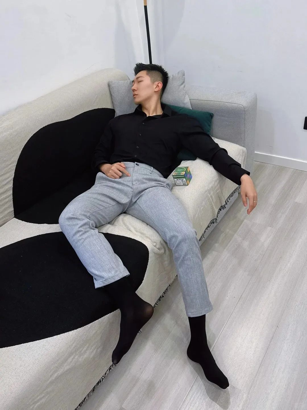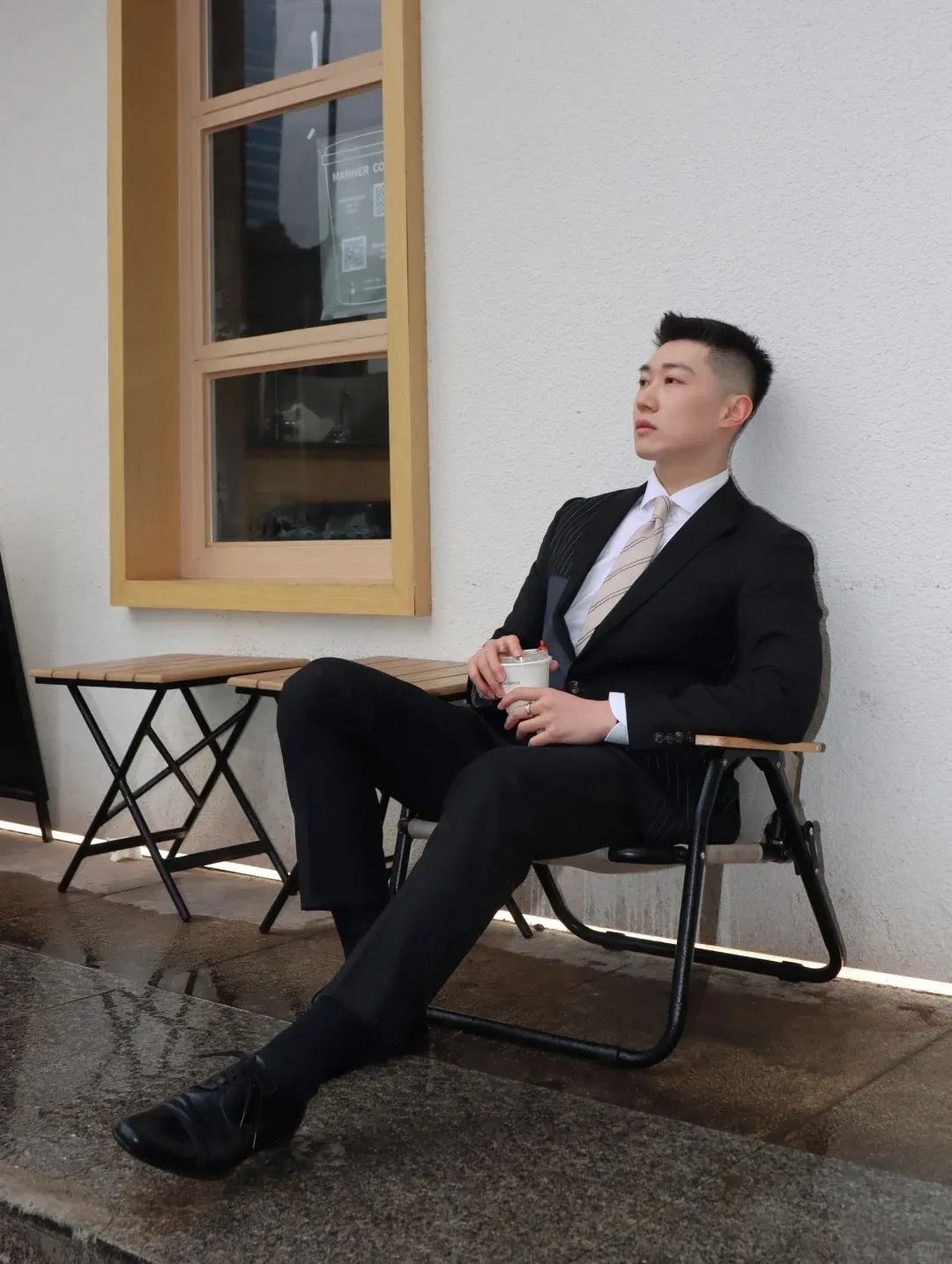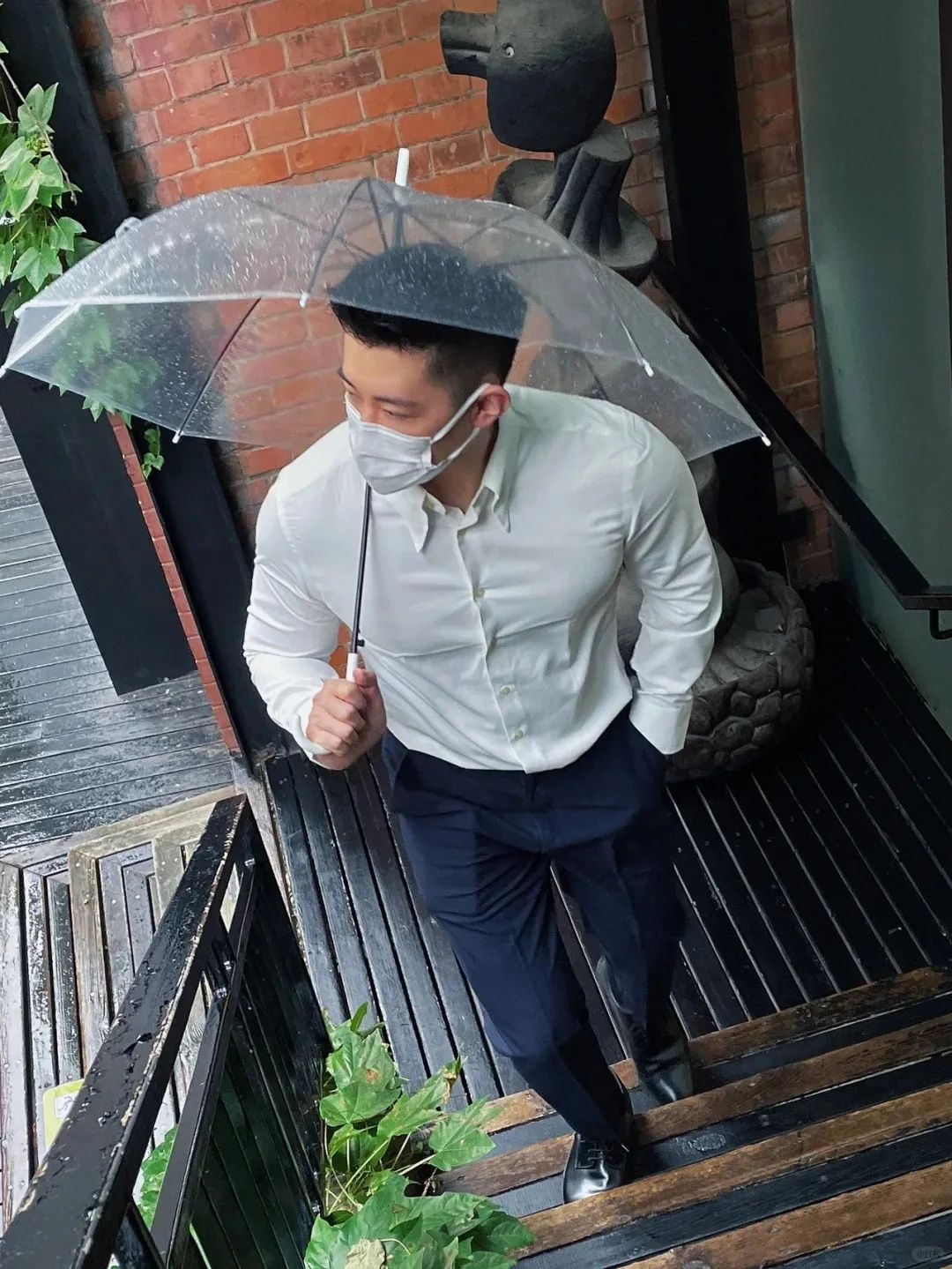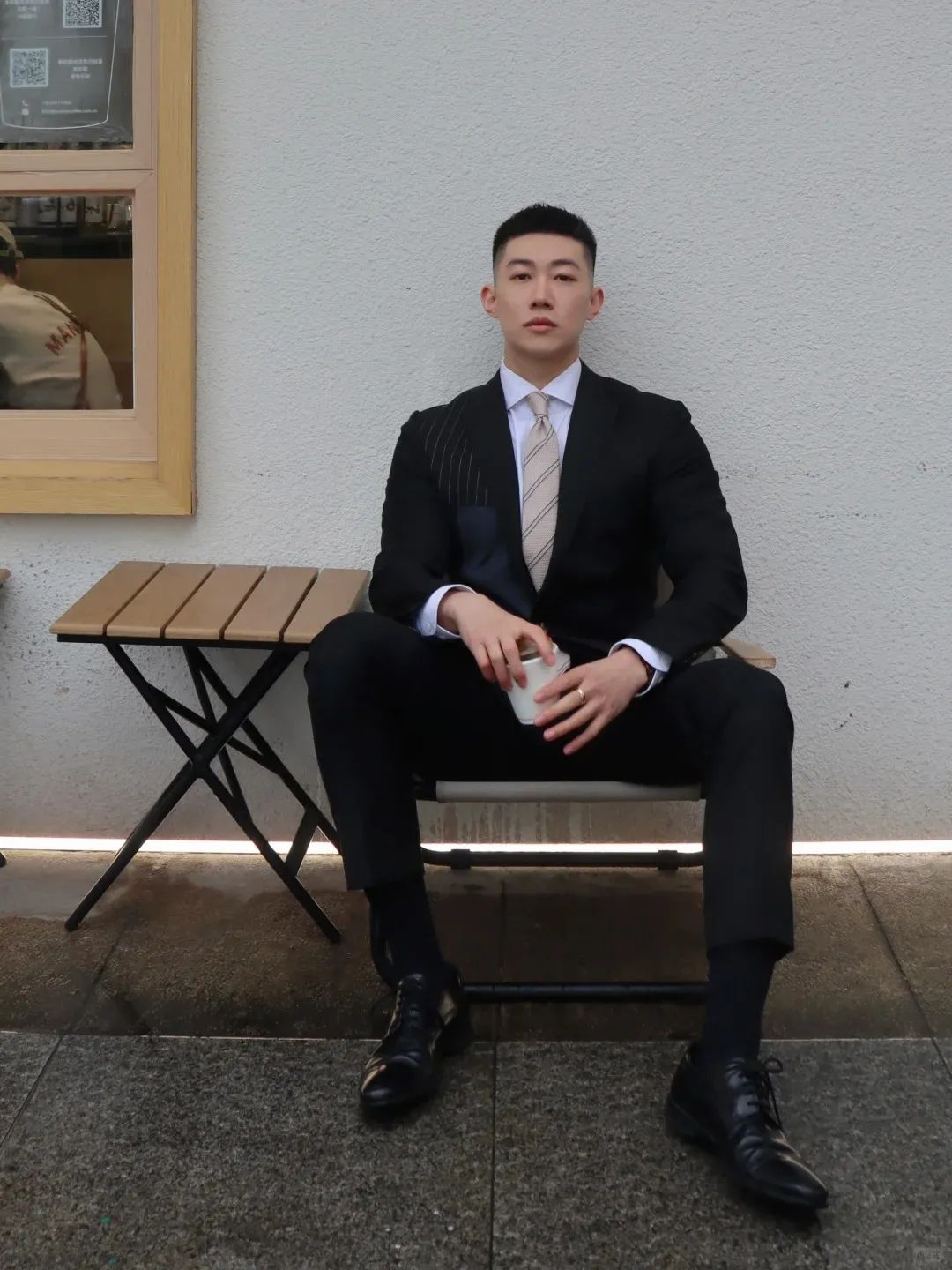 #正装皮鞋&不拘一格#,帆哥告诉你,即使是身处严谨的商务环境,身穿藏青色西裤搭配正装皮鞋,也依然可以保持个性与活力。瞧瞧他中午健身时的独特穿搭,上衣换掉,西裤皮鞋却依然在线,这就是现代都市年轻人快节奏生活的真实写照,看似滑稽却又无比真实,引人会心一笑!健身房,下午茶,无缝对接!