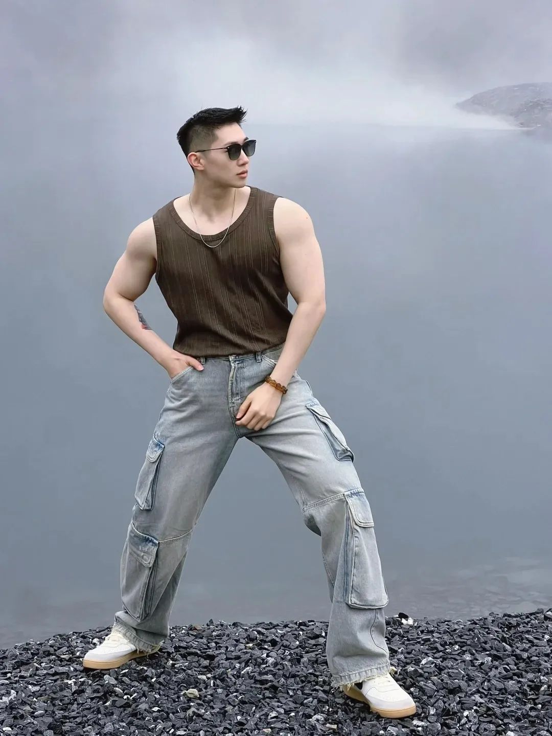 更要命的是他的身材!胸肌饱满,腹肌分明,手臂肌肉线条流畅,每一块肌肉都恰到好处,线条流畅,比例完美,就像是米开朗琪罗手下的大卫雕像! 这肌肉绝对是让人流口水的程度!想象一下,躺在他身边,感受他结实健强的肌肉,这安全感简直爆棚啊!男友力max!