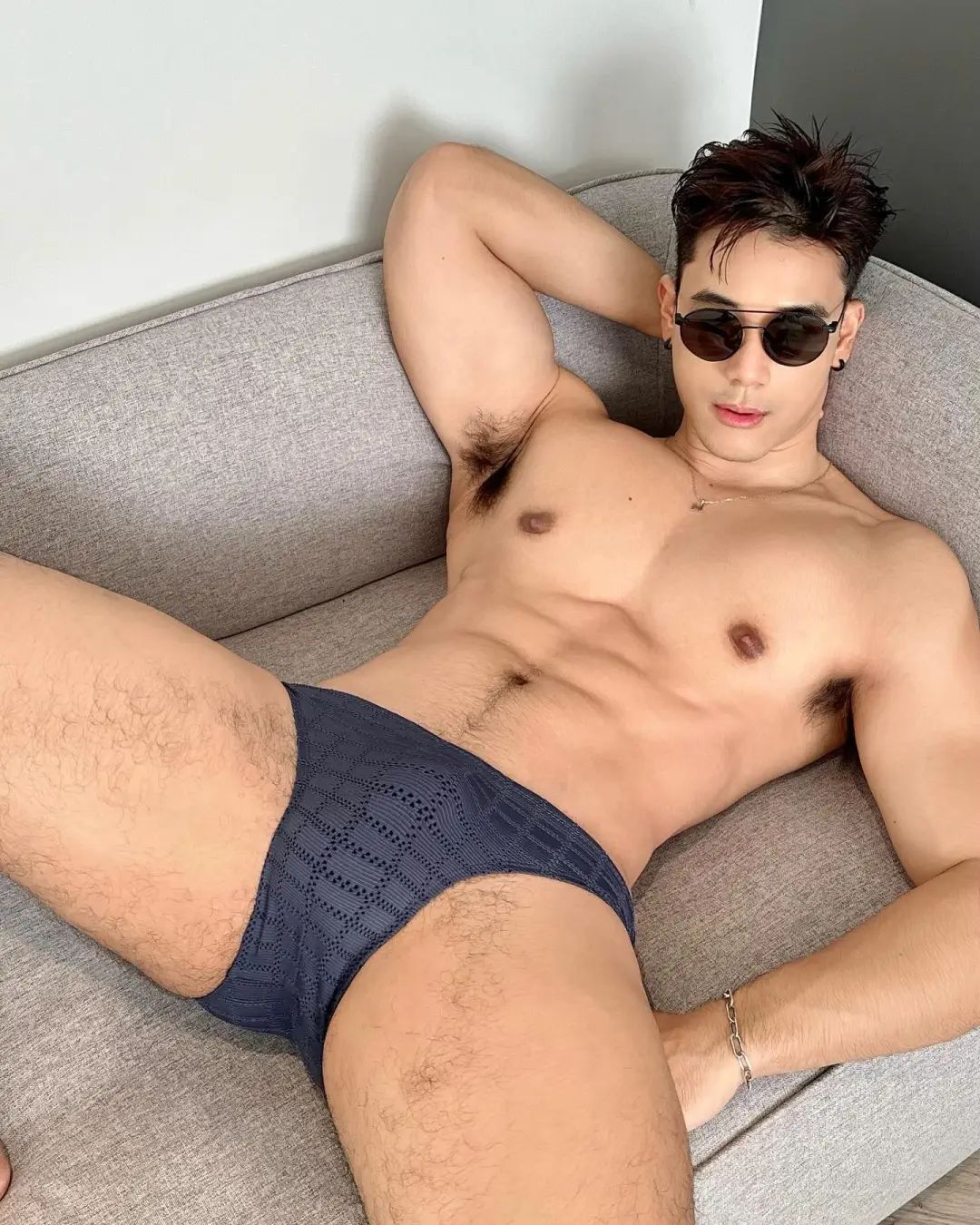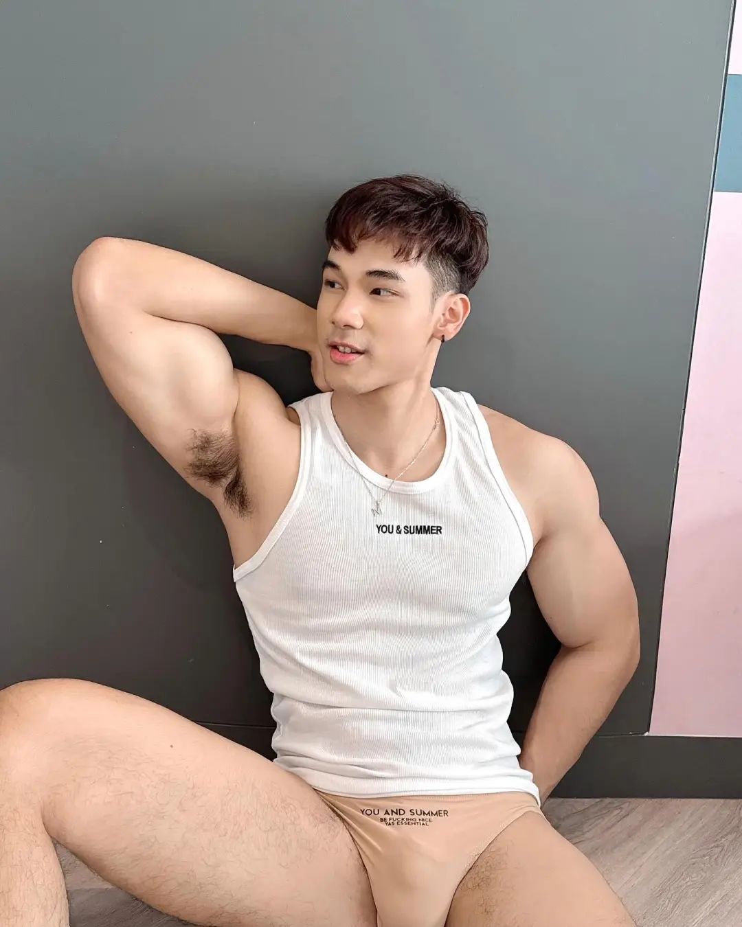 但今天旦旦要给大家分享的这位小哥就不一样,他那浓密的腋毛不但没有脱掉,甚至在每次拍照的时候还专门显露出来成为视觉焦点。 就是来自韩国的Nattapol Ngamsaard,他的ins@mz.nattapol 身高180cm体重70KG,真的是标准的身材呢! 从照片中我们就可以看出小哥的身材管理很好,而且穿搭也非常有品味,特别是在内裤的选购上,为了拍照时能吸引眼球也算是用心良苦。