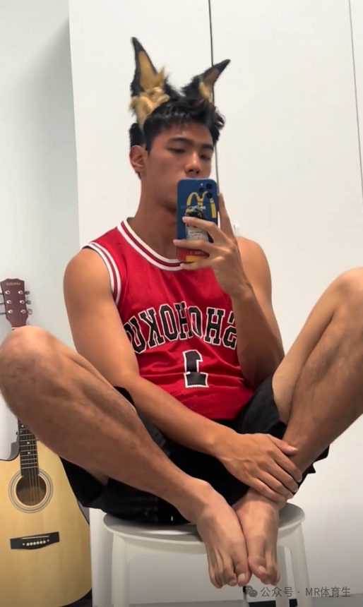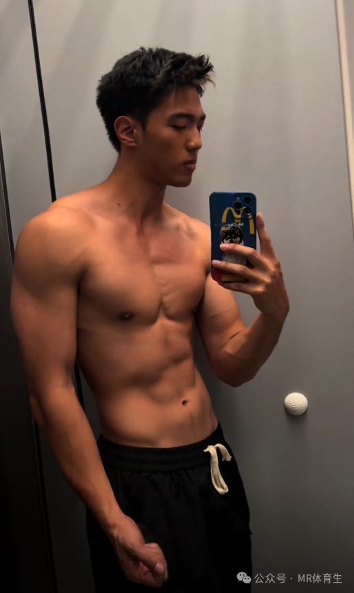 他身上透露着一种体育生独有的气息,无论是肤色还是肌肉含量,从拉丝胸肌中缝,强壮的手臂,紧致的腰身,都有着明显的训练痕迹。