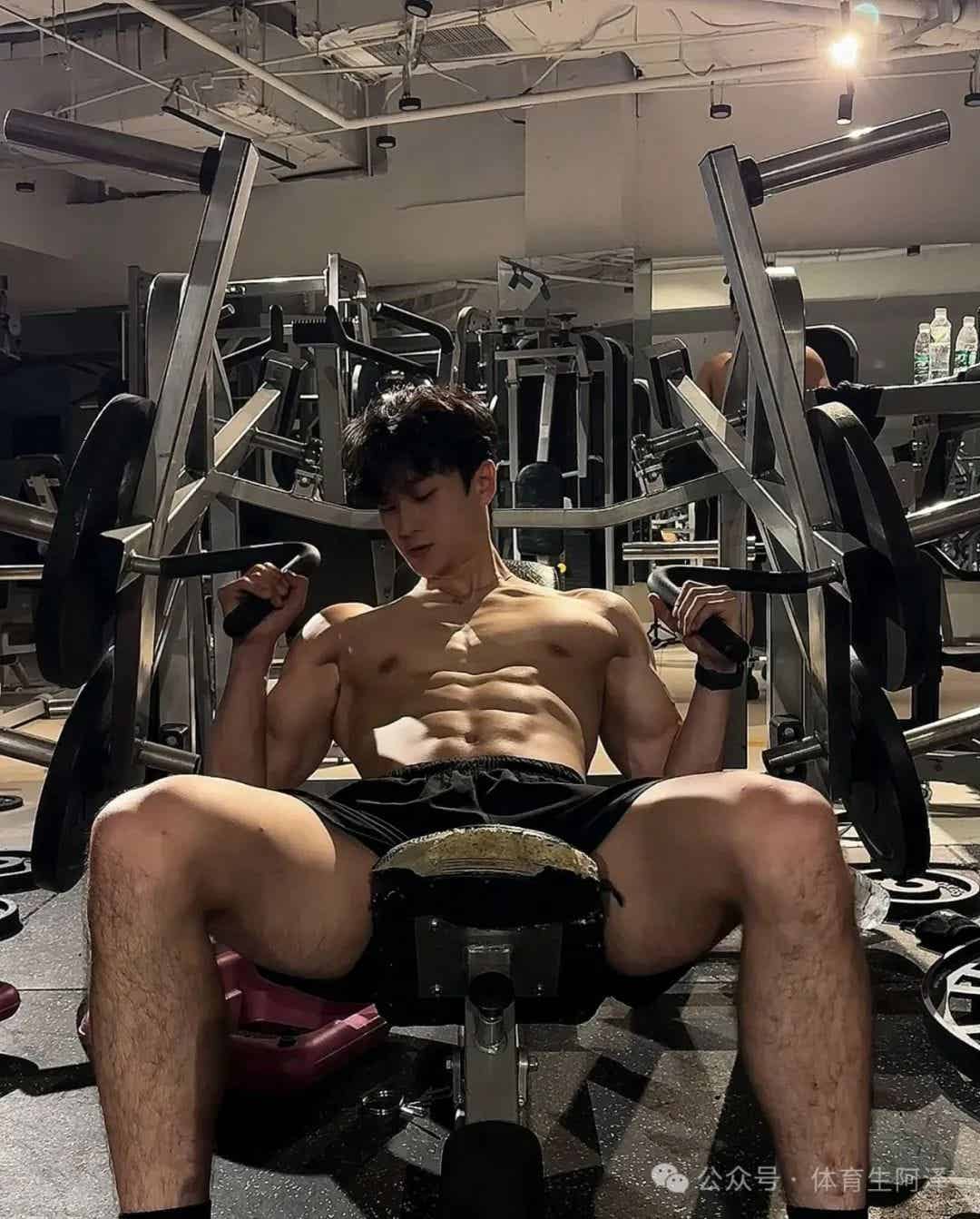 社交平台上,关于他的讨论热度居高不下。随便点开一个视频,画面中,他在灯光下挥汗如雨,肌肉线条在汗水的映衬下 流畅如雕刻,每一次俯身、每一次挺身,都带着极强的视觉冲击。 腹肌、翘臀、宽肩、倒三角身形……每一处都精准击中审美爽点,让人不由自主地沉迷其中。