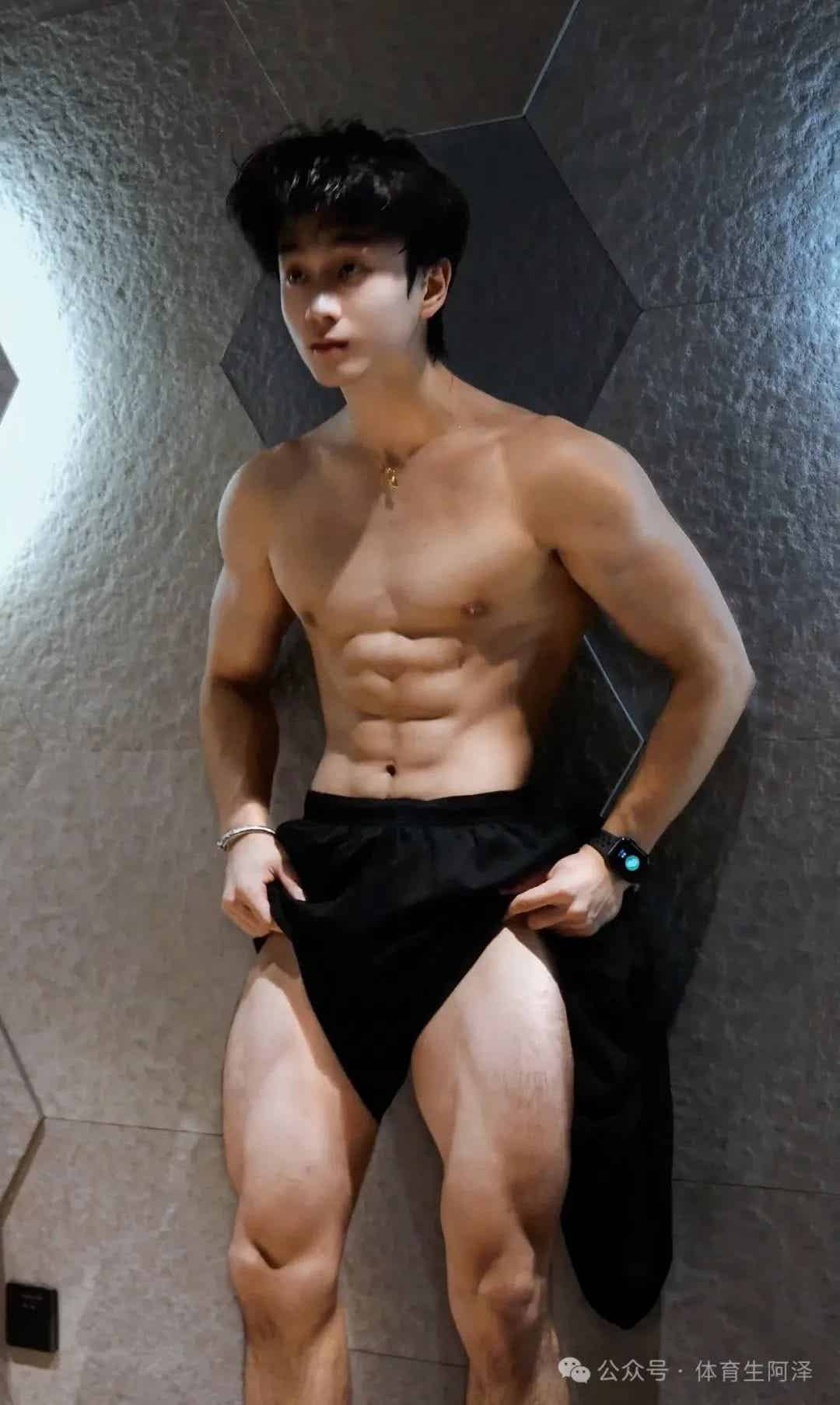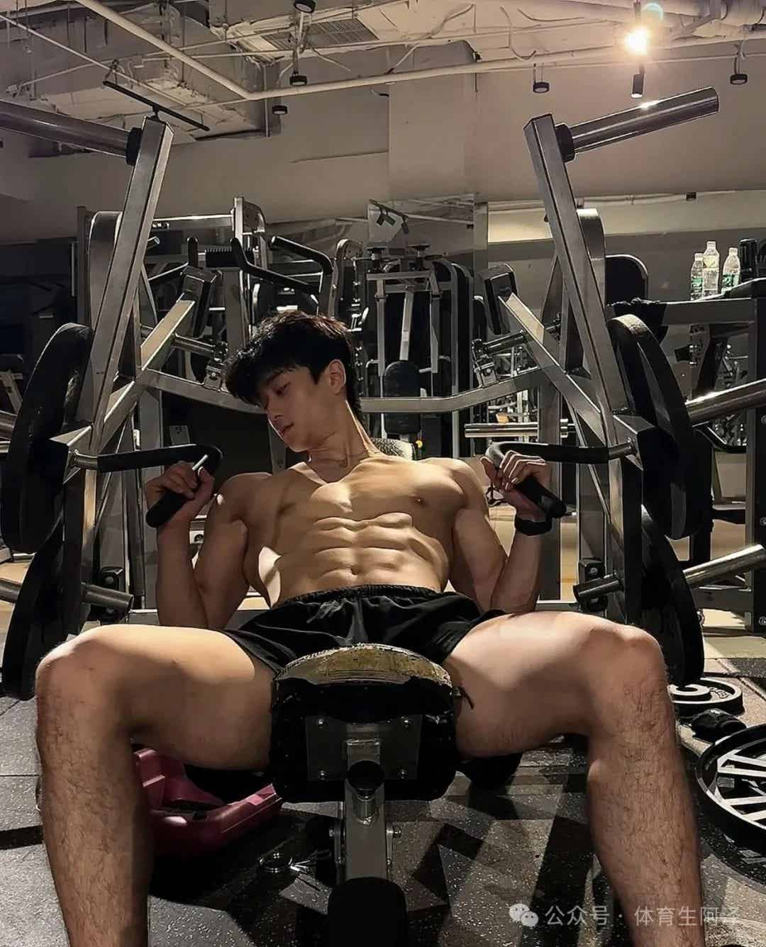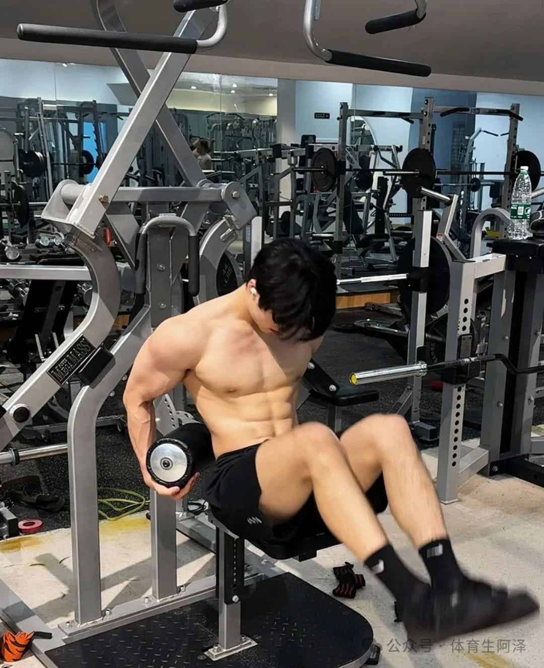 翘臀:深蹲、硬拉练出的紧实翘臀,完全摆脱了“瘦子扁臀”的窘境,甚至有粉丝直言:“他穿运动短裤的样子,比很多女生还性感。”
