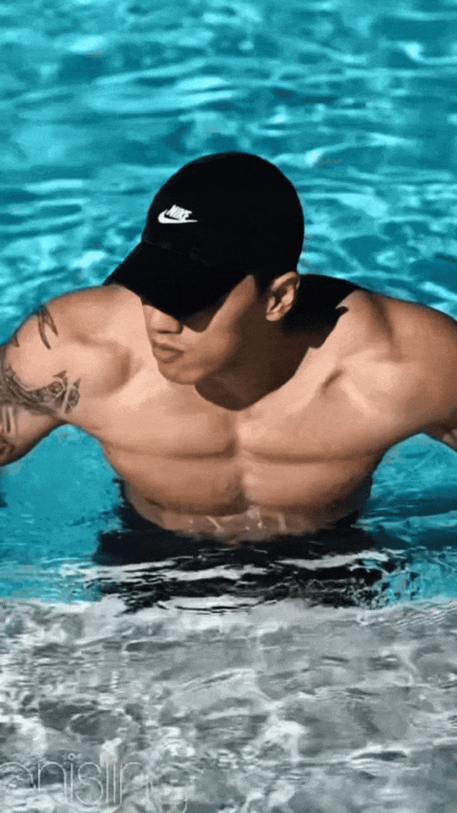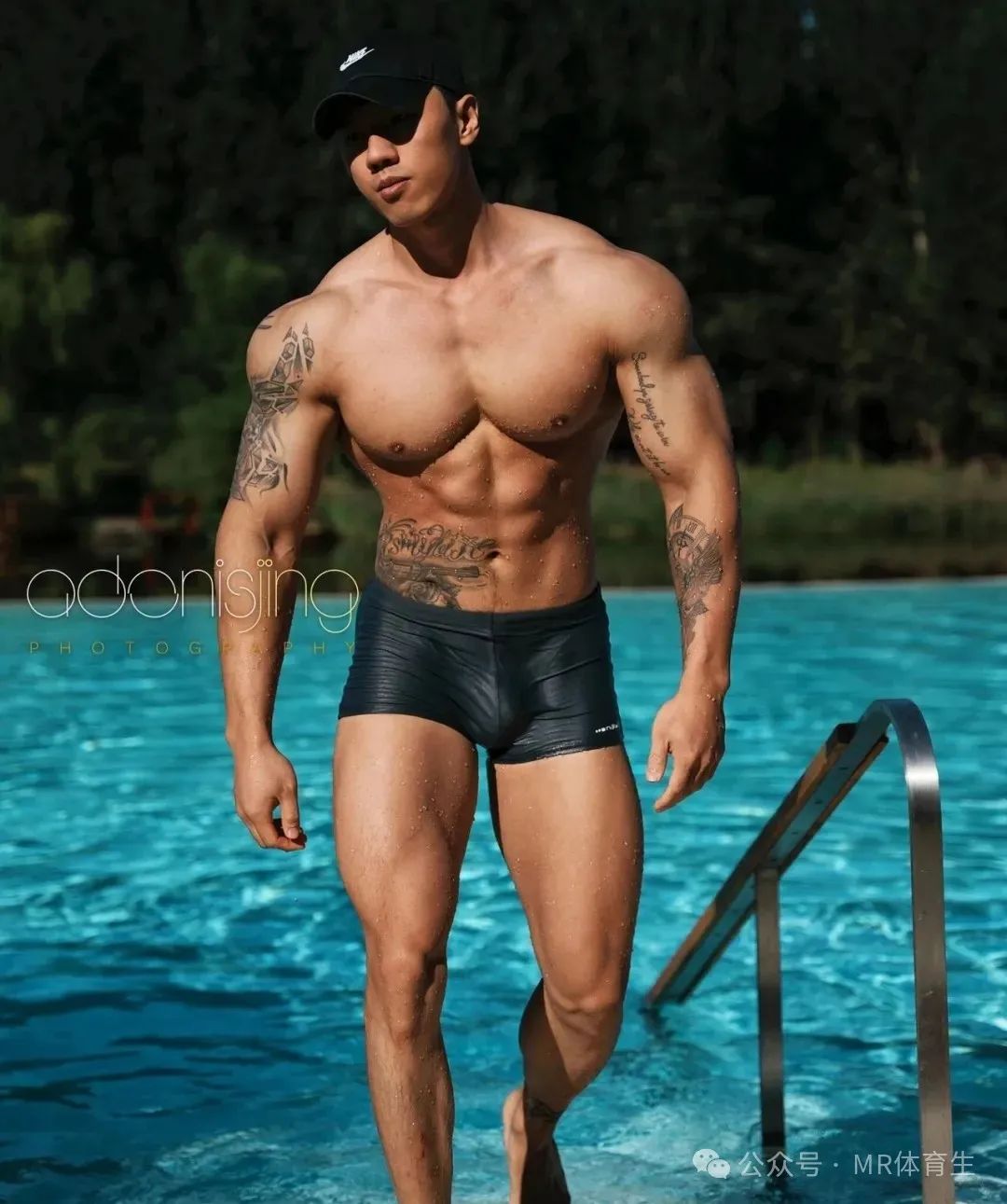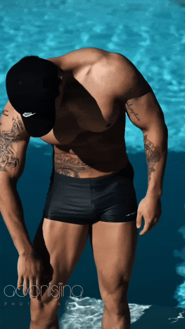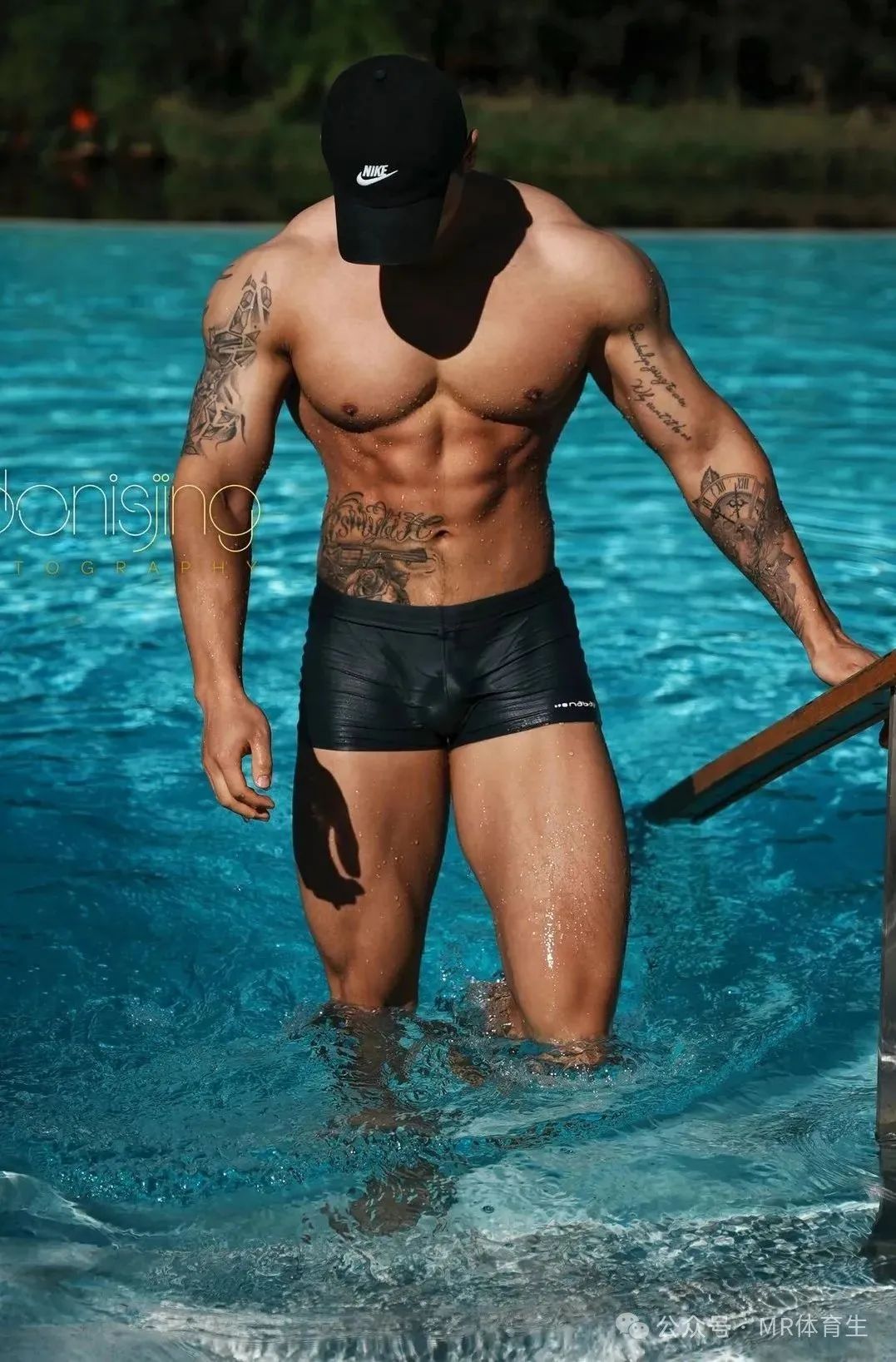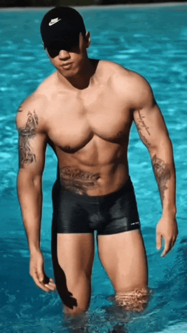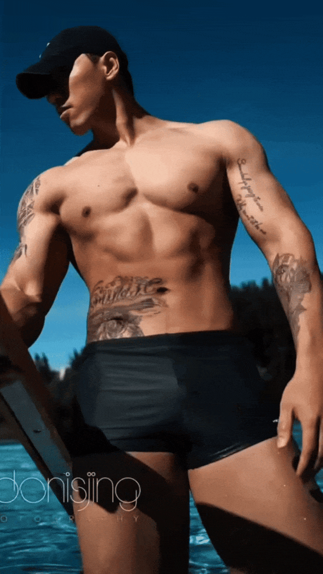 在澄澈泳池边,他迈着自信步伐,每一步都散发着无可抵挡的魅力。黝黑的肌肤闪烁着健康光泽,流畅而极具力量感的肌肉线条,是汗水与坚持的勋章。身上的纹身,似在诉说着独属于他的故事,增添了几分不羁与个性。