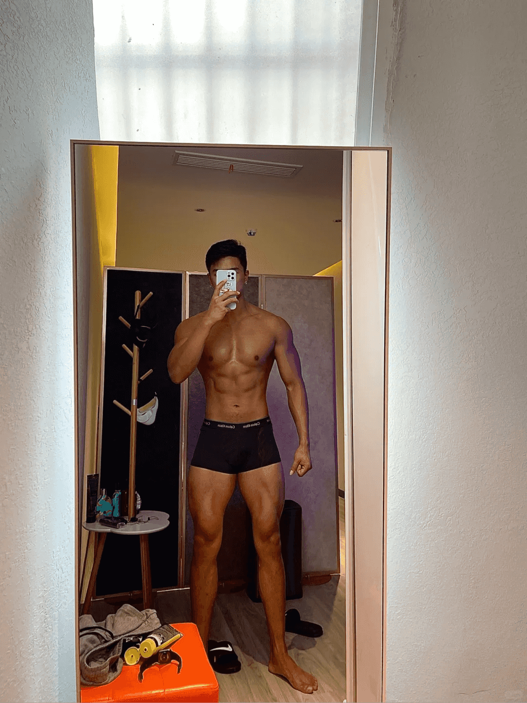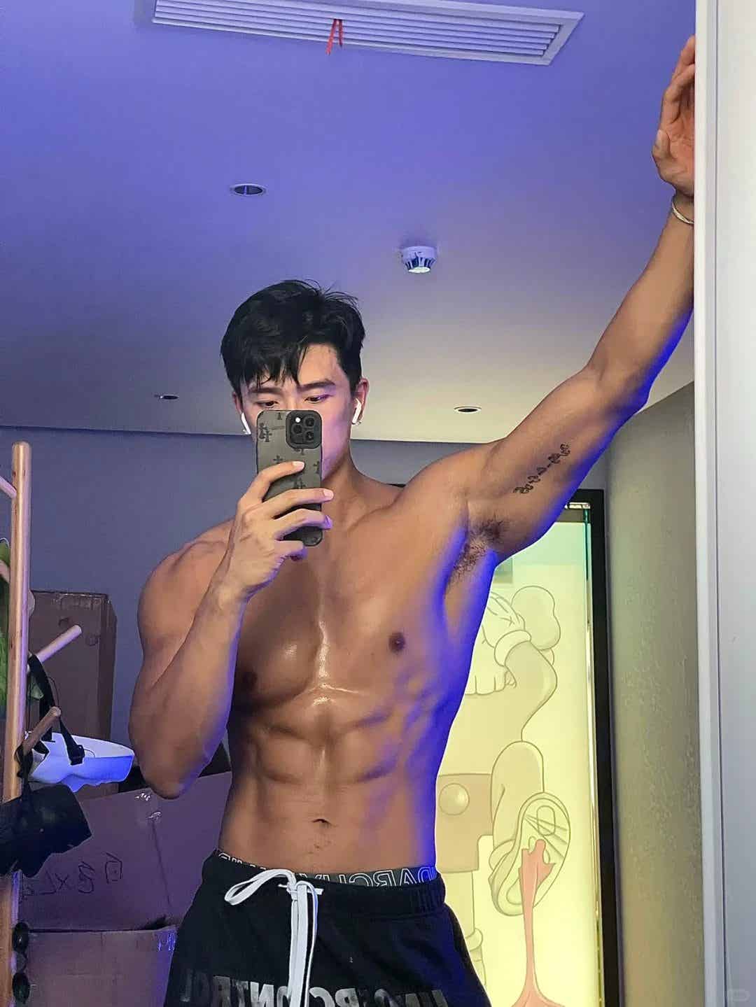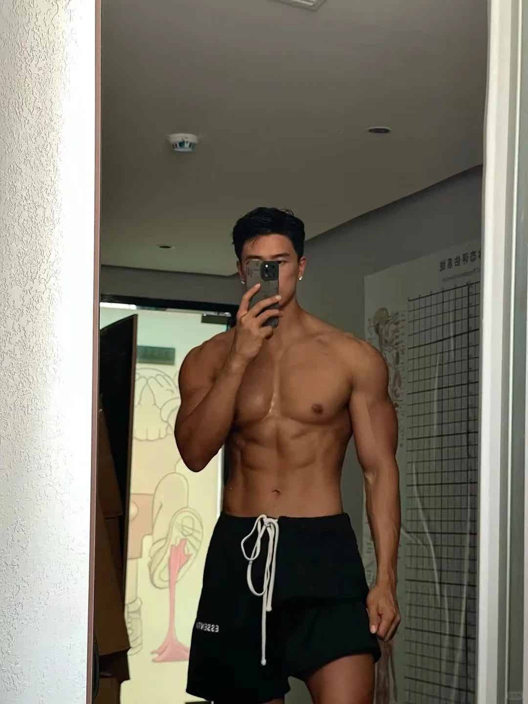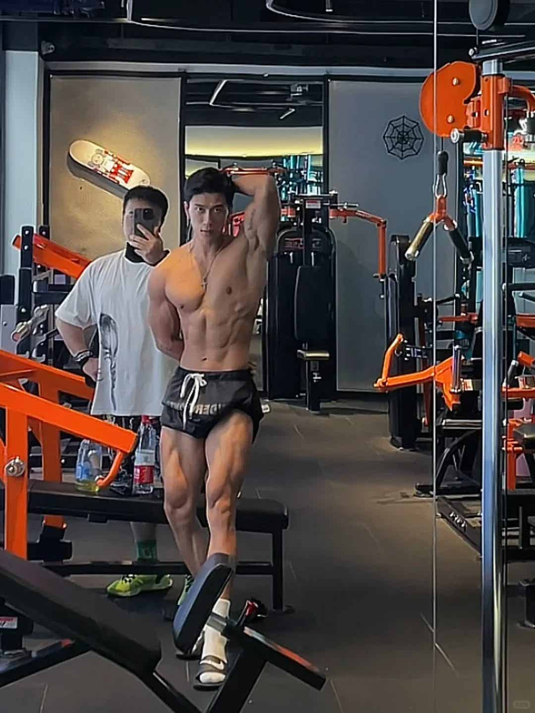 作为一名健身教练,他的身材已经做到了极致。光看他那双开门式肩膀、手臂的肌肉围度,就知道训练的强度有多恐怖。体脂稳定在10%左右,巧克力腹肌随时在线,锁骨和人鱼线的搭配,直击审美天花板。