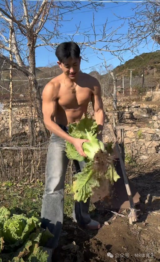 他早起做饭保证营养的补充,回村干活都能轻松应对,这妥妥的就是邻家男孩,毫无吝啬光膀子秀出小麦肤色,简直是村里的一道风景线。