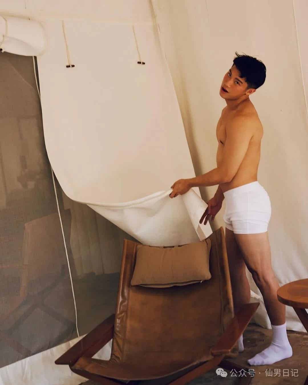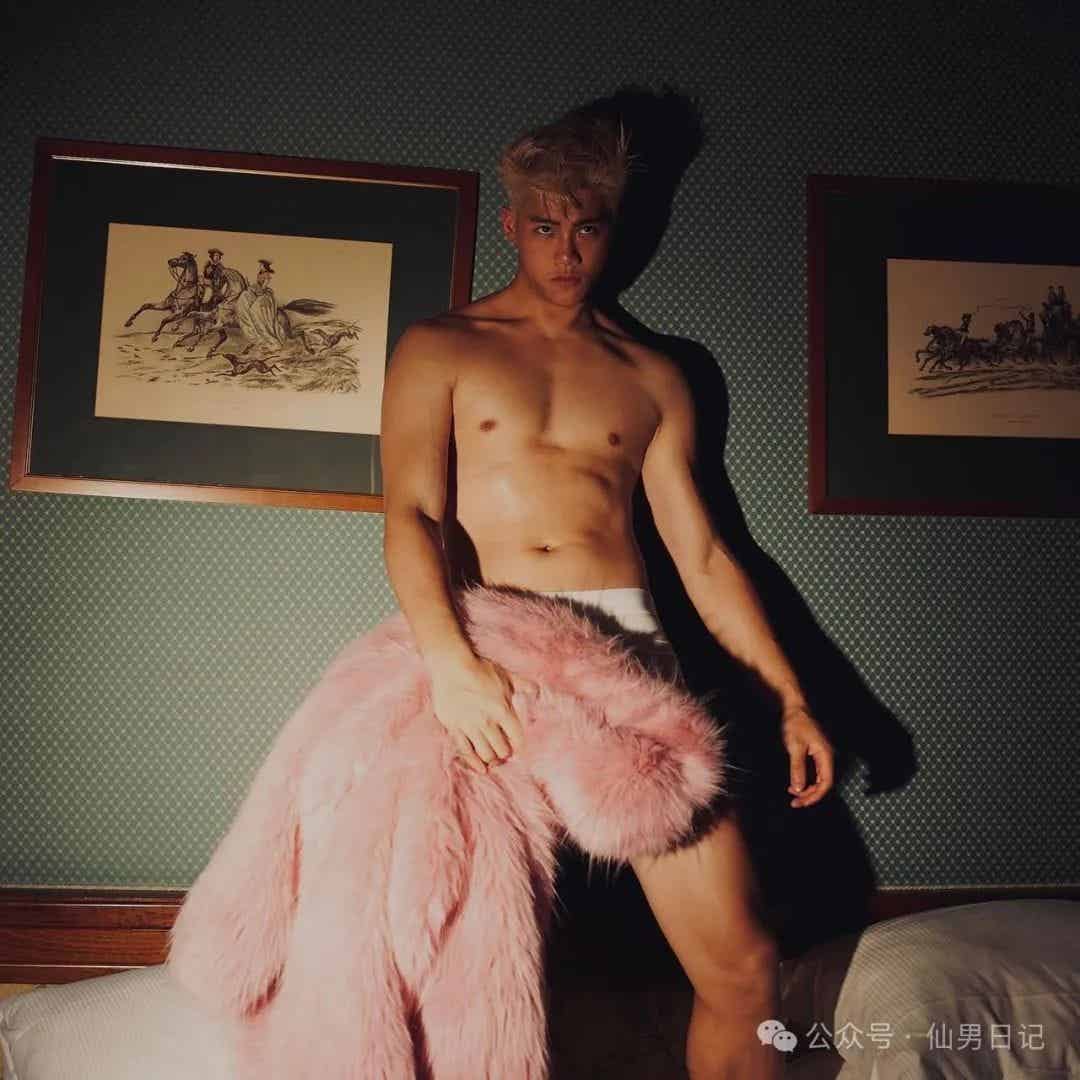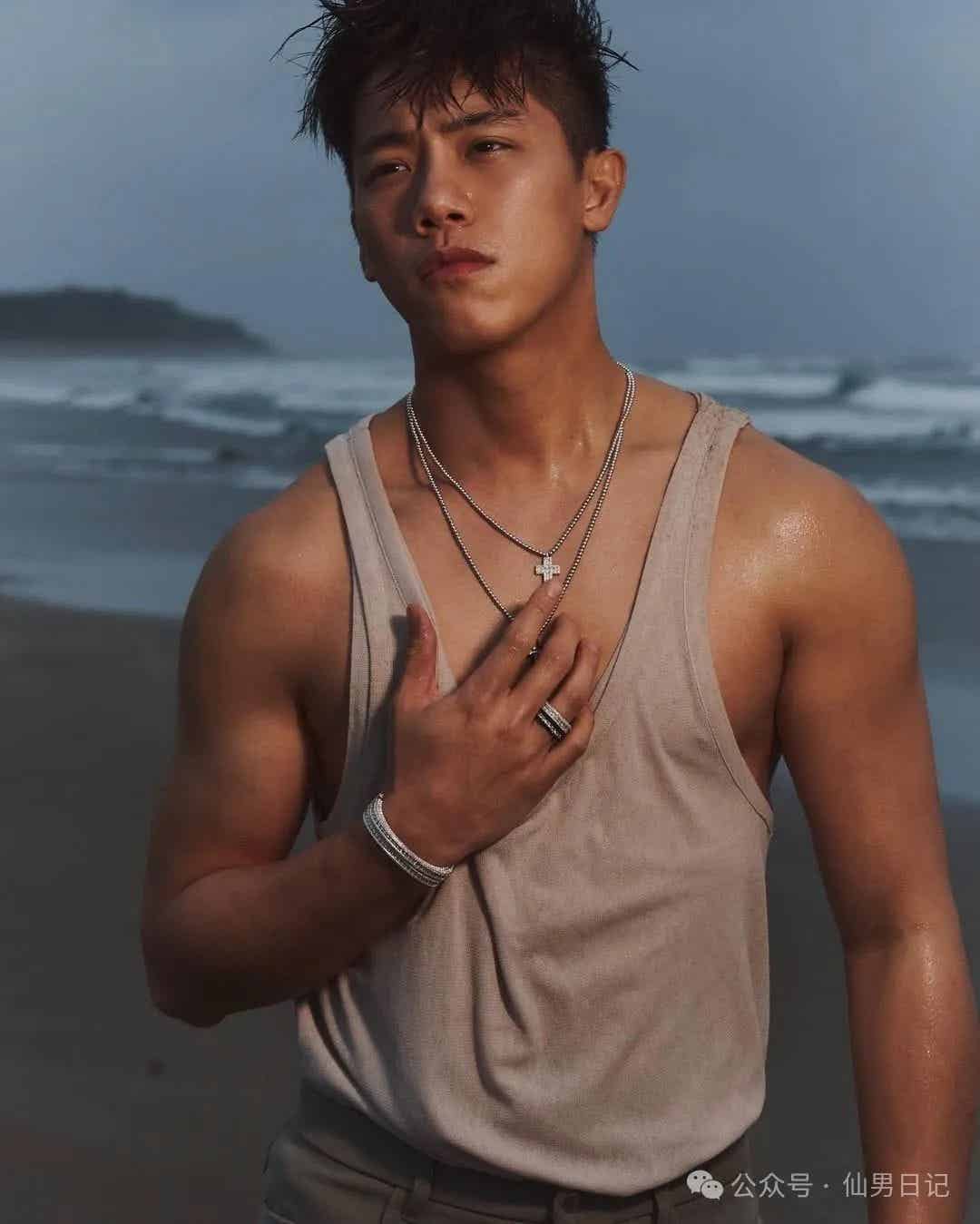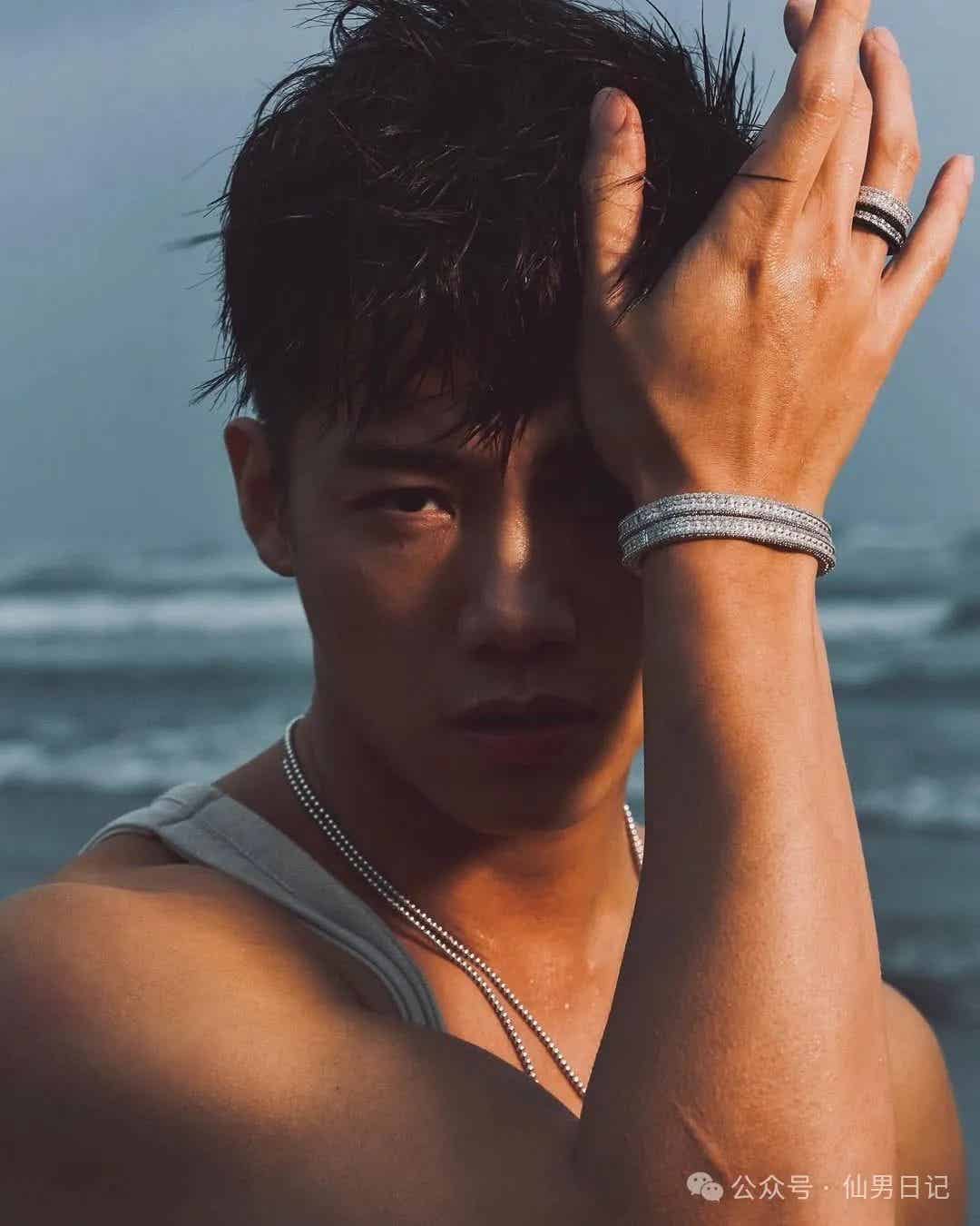 更绝的是他玩水的瞬间被抓拍:水花拍打胸膛的瞬间,水珠在胸肌沟壑间折射出彩虹,这个视觉真的太棒了!