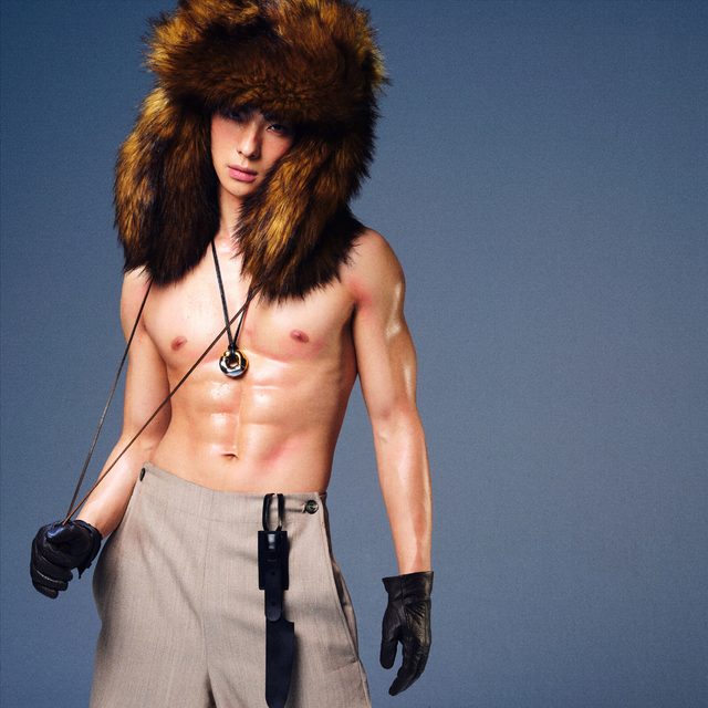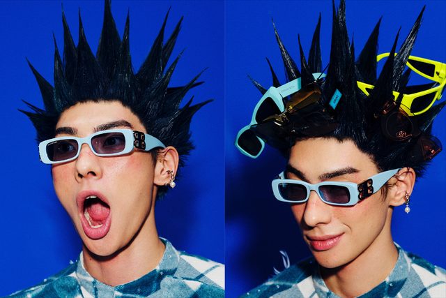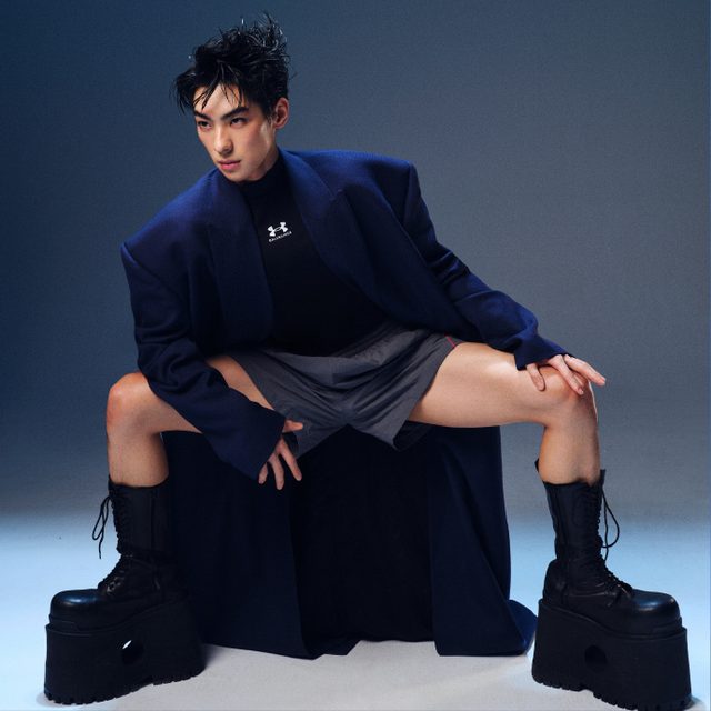 除了日常风,颜安还拍摄了一组前卫夸张的封面,刺猬头、20厘米厚底增高靴、蓝红撞色紧身裤袜等元素,搭配经典出圈的“笛子舞”动作,与其搞笑气质不谋而合。