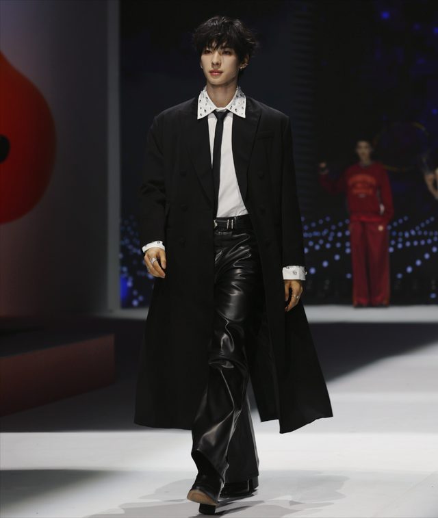前段时间参加的秀场,以白衬衫、黑风衣造型亮相,灯光下侧颜线条优越,气质冷峻却不失帅气。