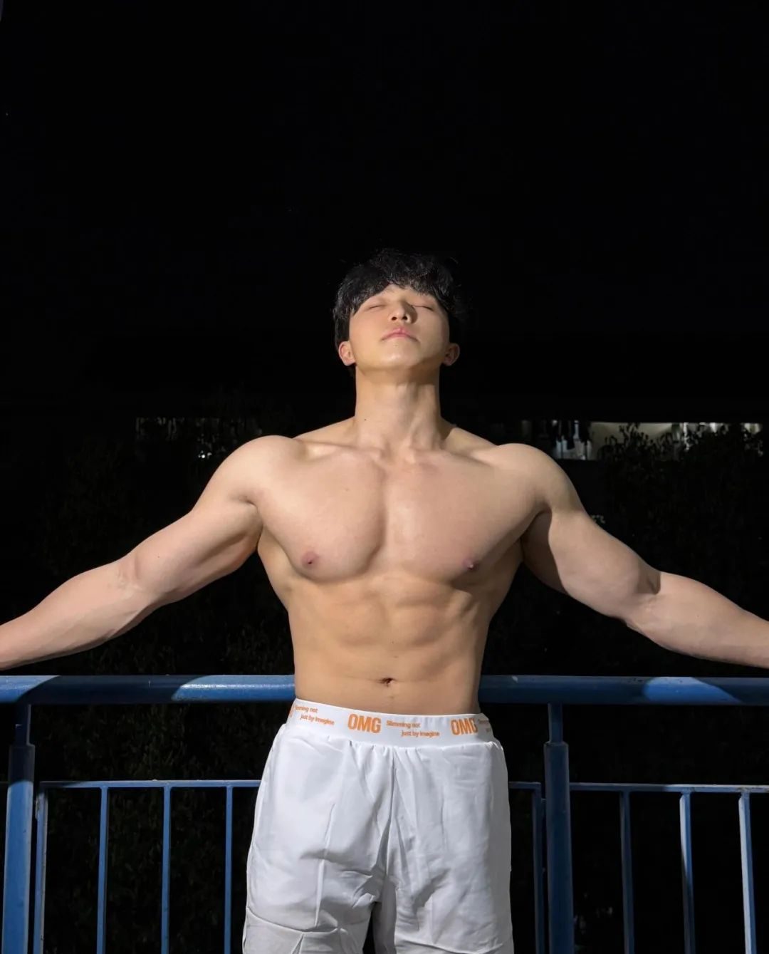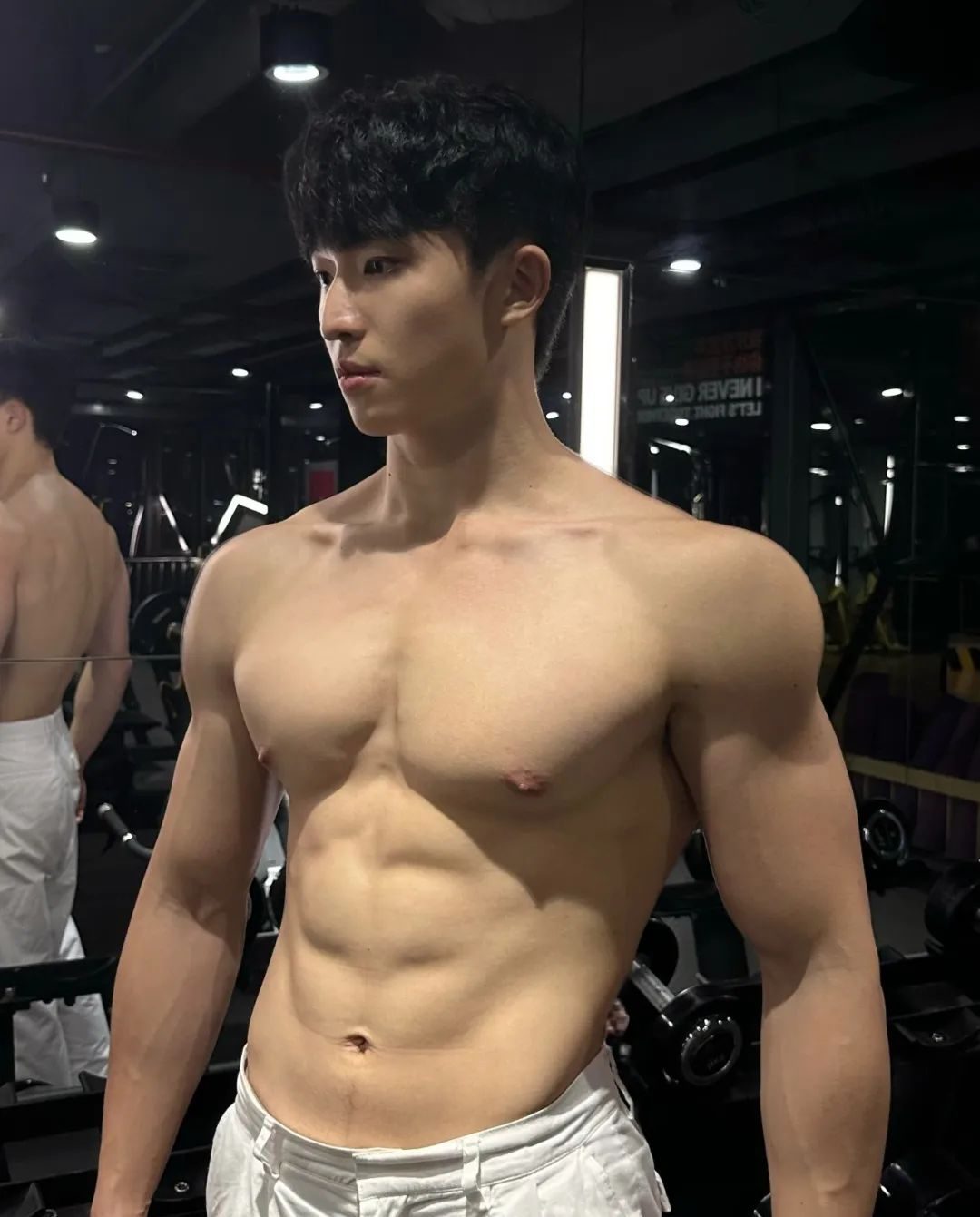 这位肌肉帅哥身高185cm,体重 78kg,在读大四,还是体育生。因为出众的身材,他偶尔还会兼职健身模特,妥妥的行走荷尔蒙。