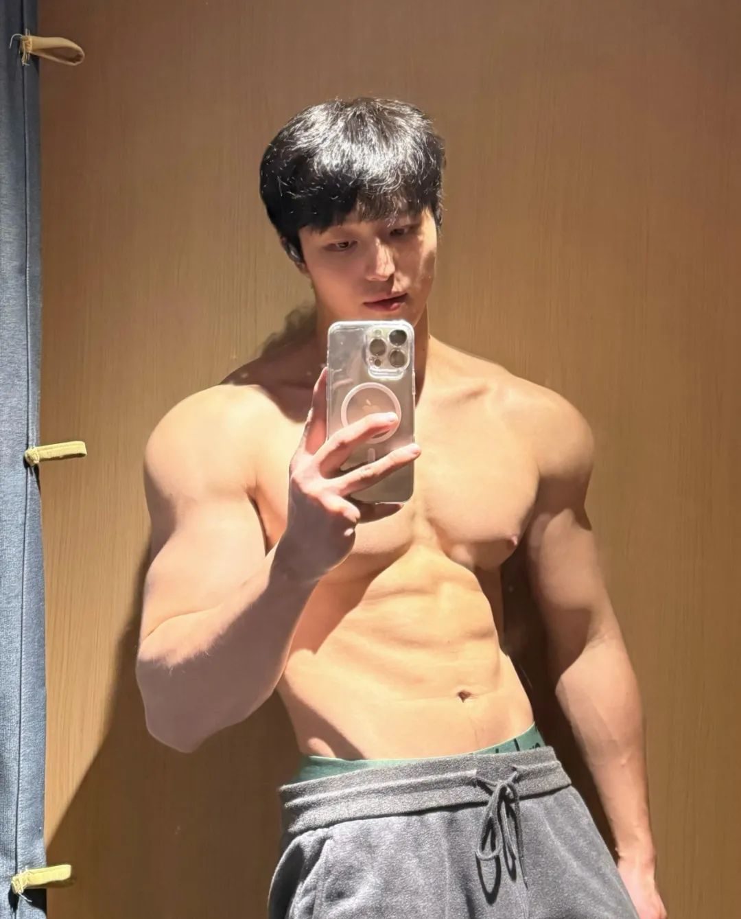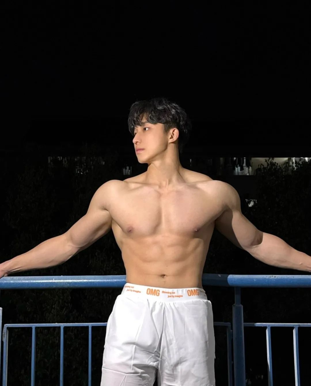 瞧瞧这一身腱子肉,宽厚的肩膀,随便靠一靠就超有安全感。饱满的胸肌、线条分明的腹肌,人鱼线一直延伸到神秘地带,跑步时肌肉有节奏地起伏,每一下都敲在大家的心巴上