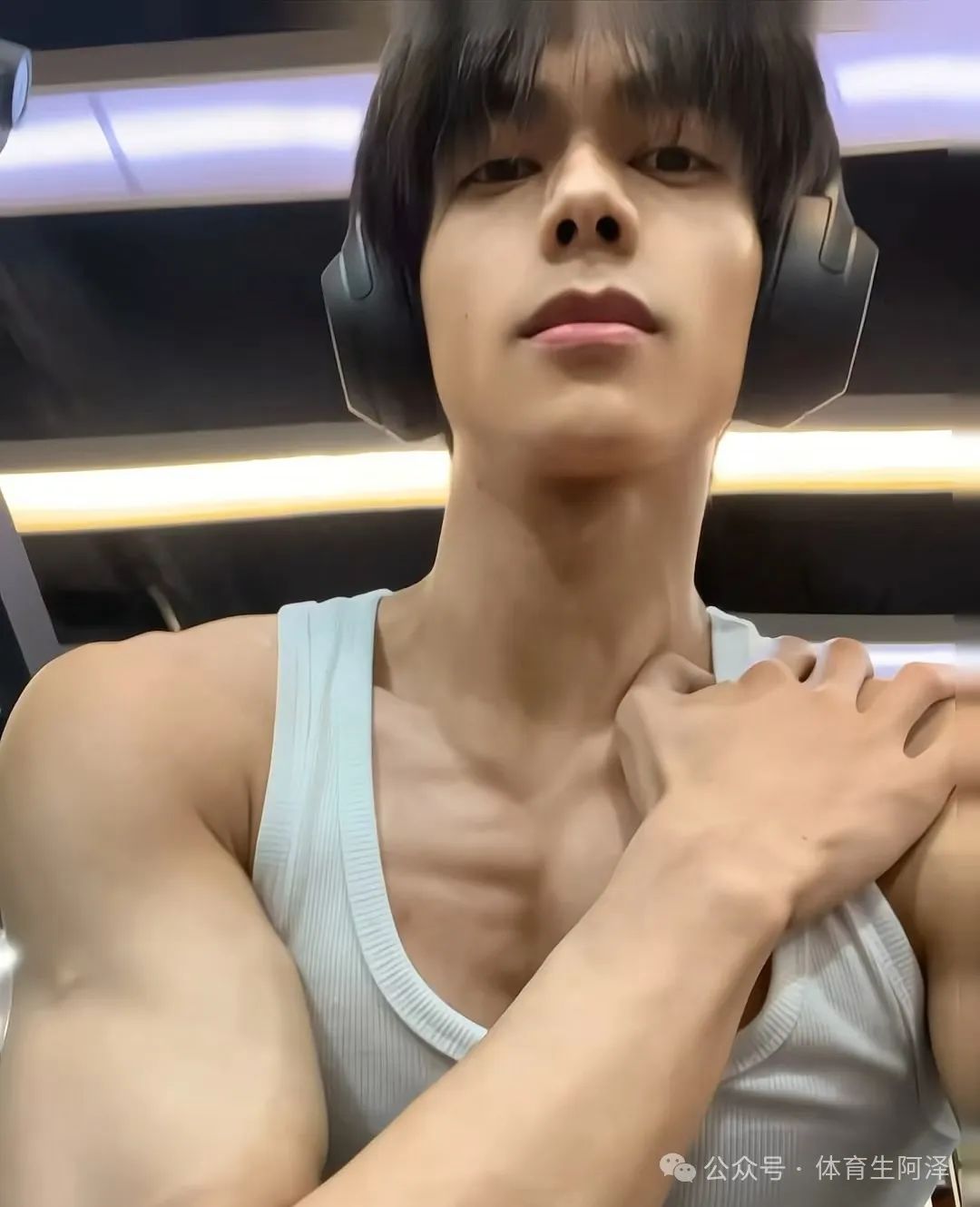 还有这两张一张健身房的肌肉照,一张浴室的侧脸照!要不说人家 能火遍全网呢?就冲这个刀削般的下颚线就知道了为什么帅哥的脸那么立体了。这完全是标准的建模脸啊!