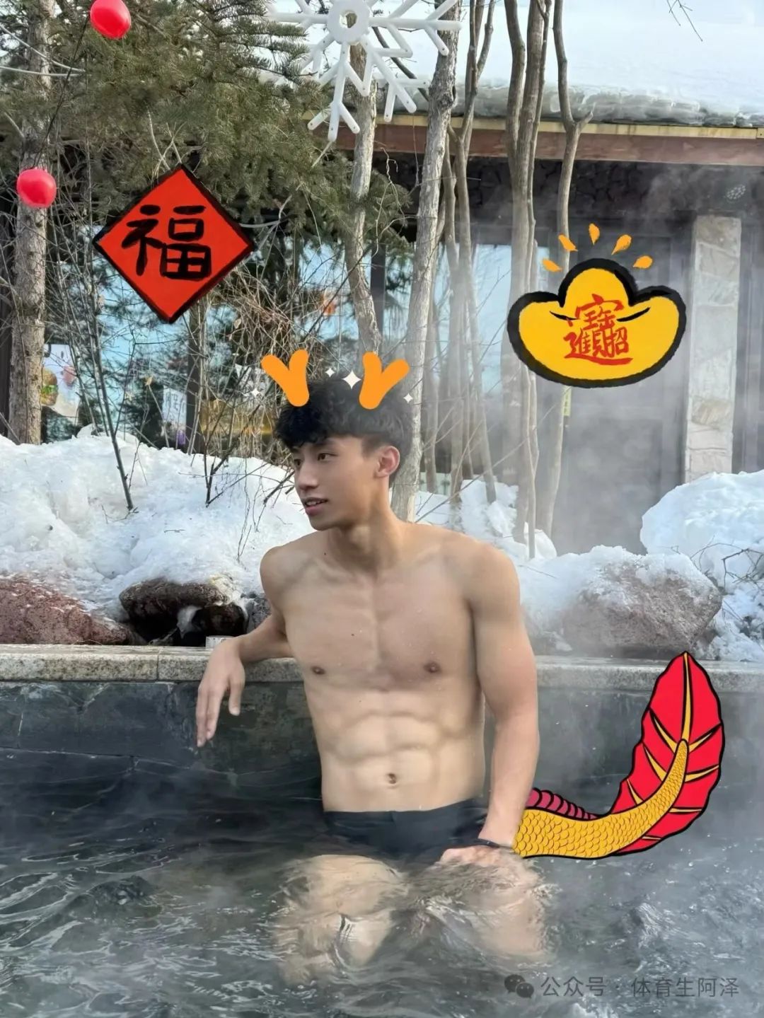 还有这个泡温泉的时候,真的不能理解冬天啊!这个外面都是雪,上半身露在外面不会冷吗?果然东北的男生就是抗冷啊!他们的体质是不一样的,都是从小开始运动的,肌肉力量满满。
