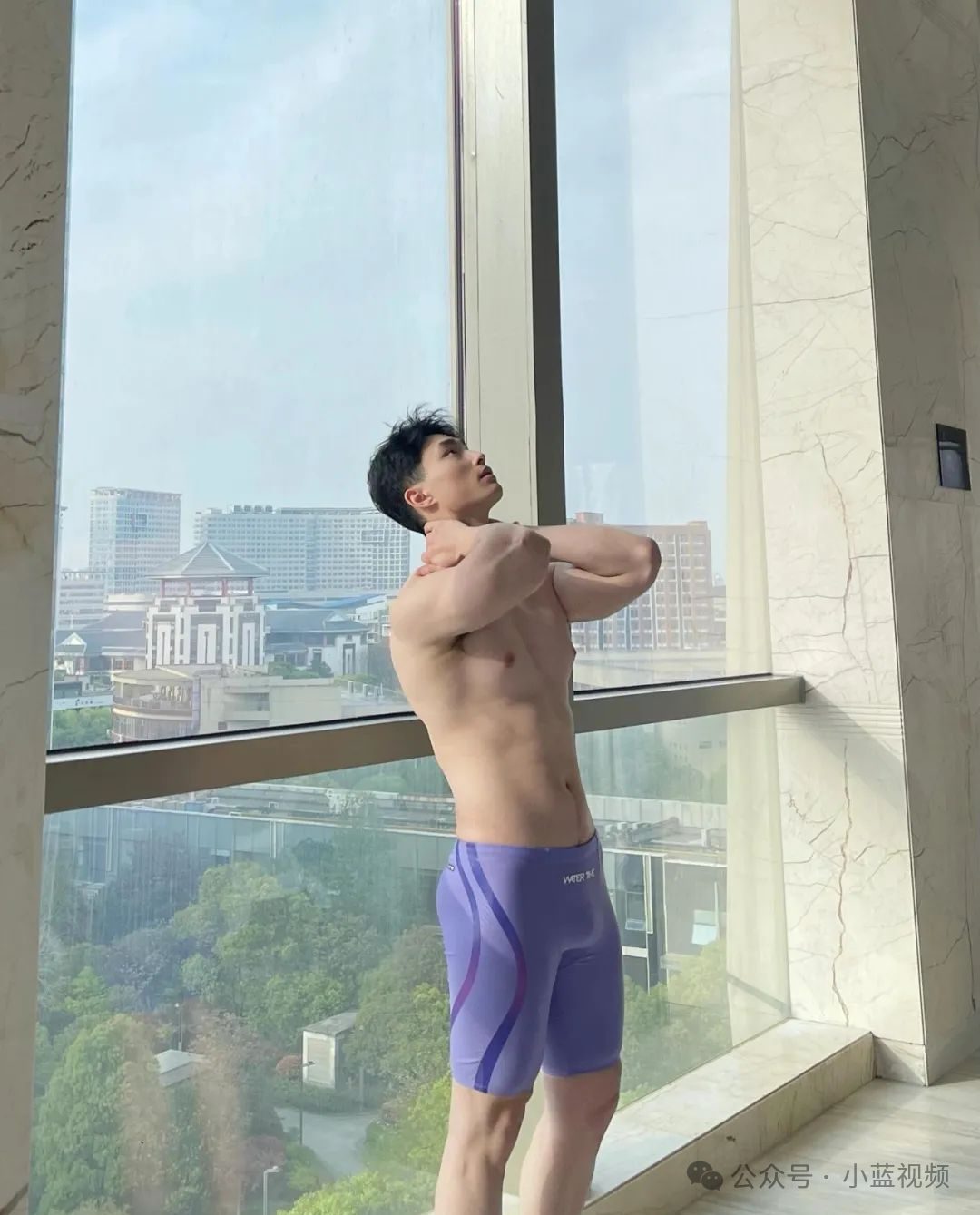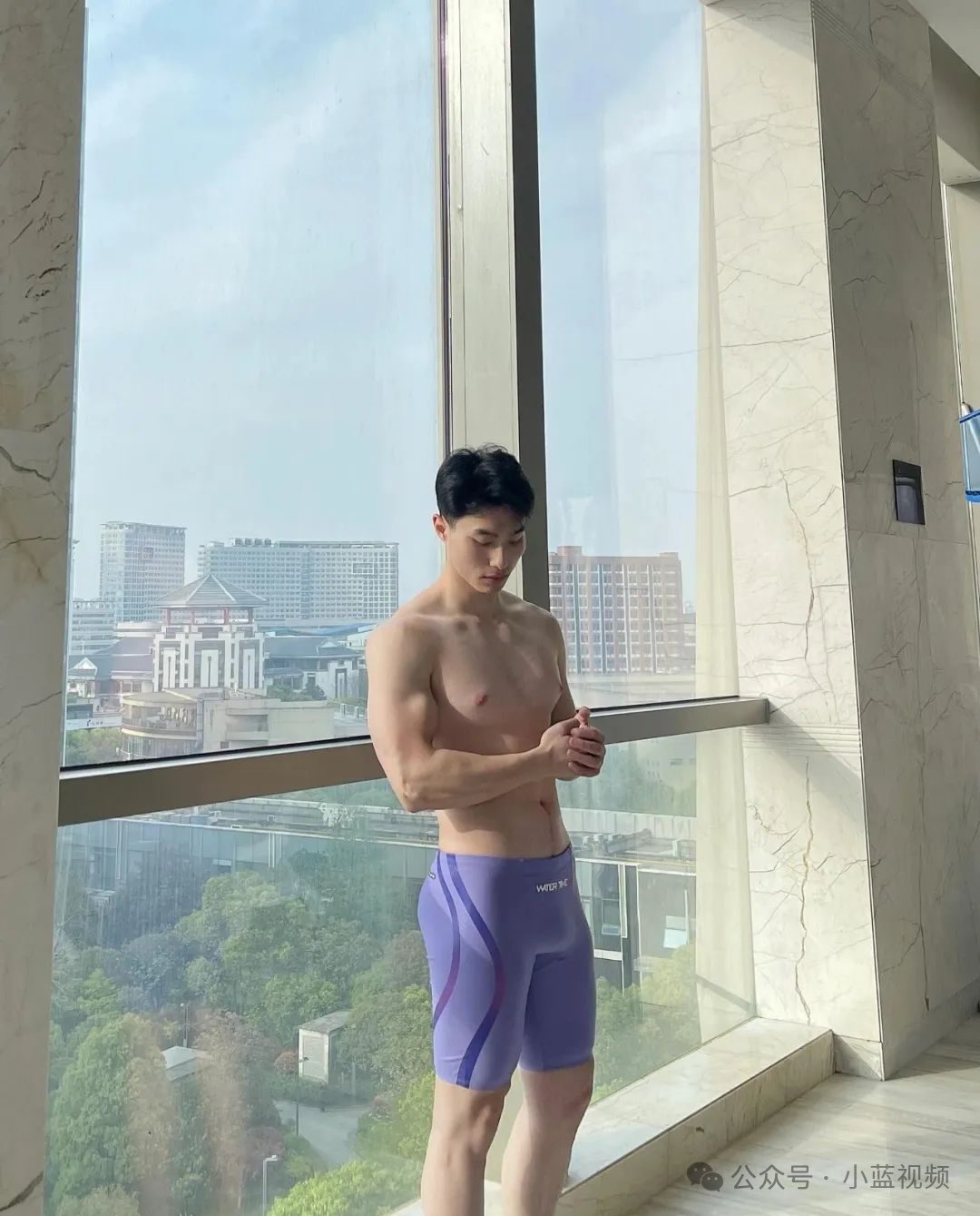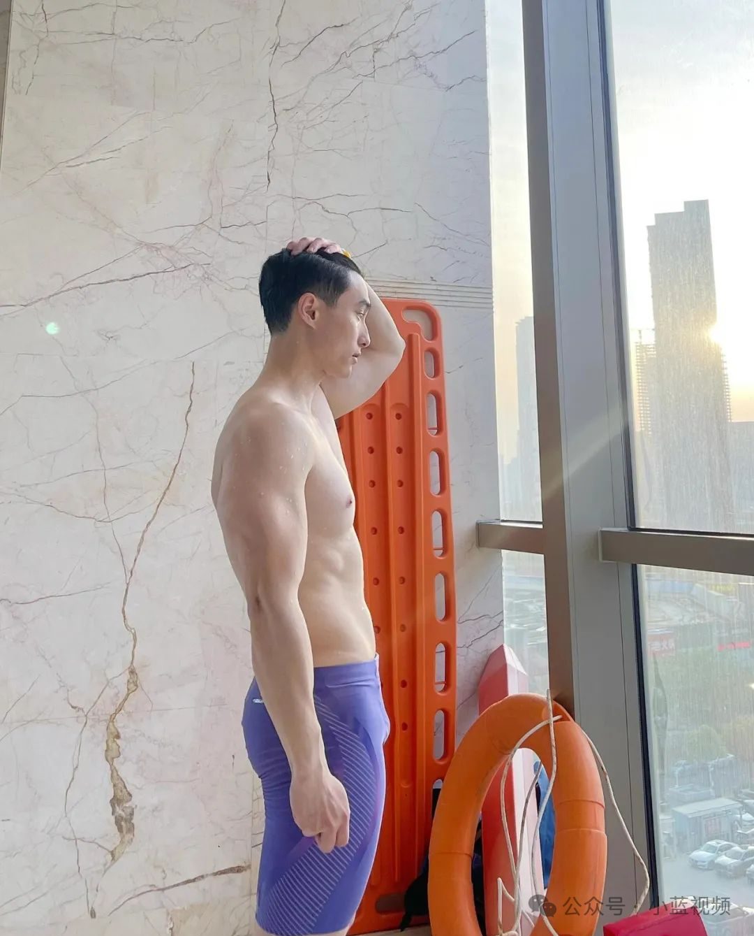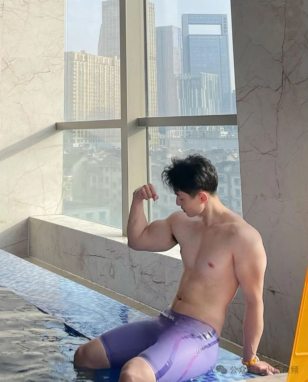 江西游泳健身帅哥,泳池里的他大长腿,虽然肚子有点大,也阻挡不了清爽肌肉健身帅哥