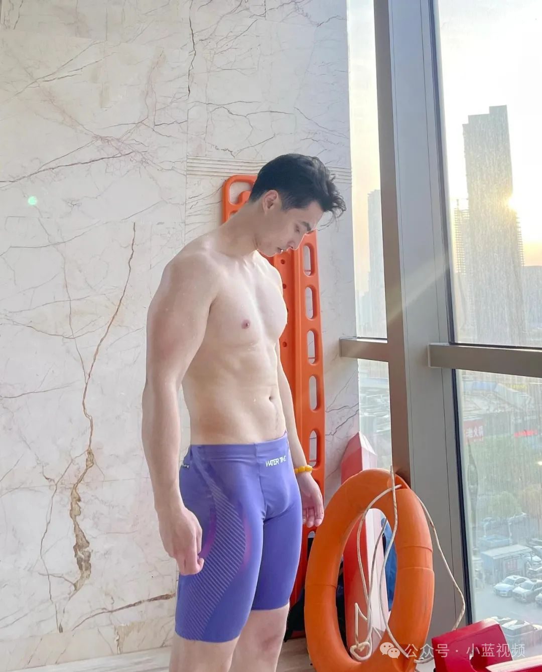 更绝的是他那翘臀,真可谓是翘P!在泳池边,他随意地站着或是坐着,那挺翘的臀部线条都十分吸睛,为他的整体形象加分不少。湿发搭在额头上,脸上挂着自信的笑容,整个人散发着青春活力与男性魅力。