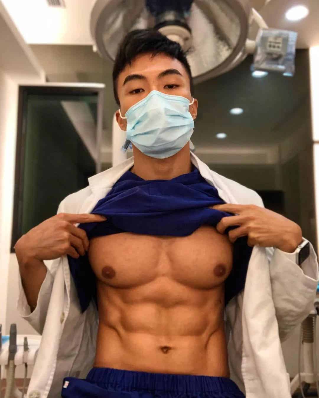 今天小飞超级兴奋地想和大家分享一个超帅的医生网红——@Hank Lin,他来自台湾!其实最吸引我的,不仅是他医生的身份,更是那一身让人难以忽视的性感身材!特别是他的胸肌,真的是超大超有型,怎么看怎么让人心动。