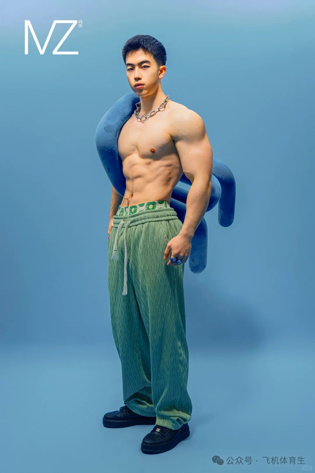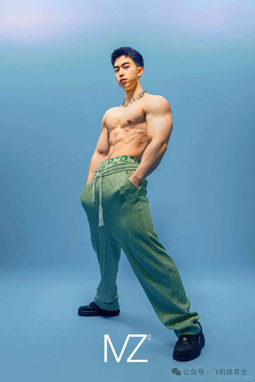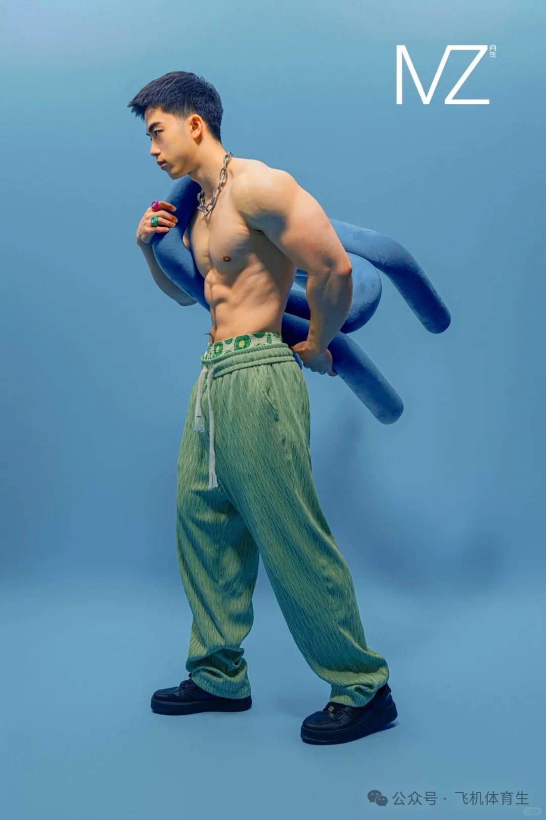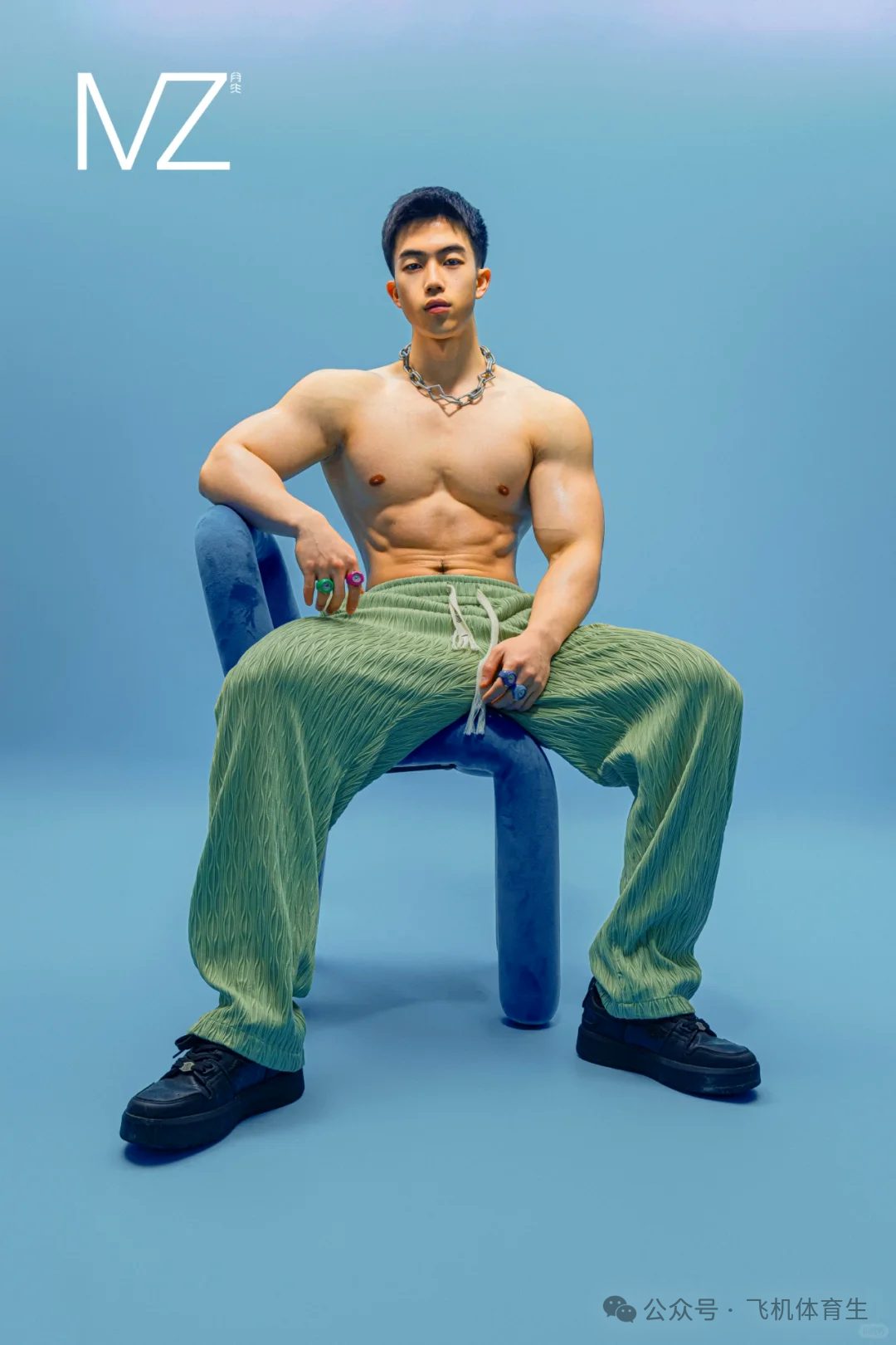 棚拍的场景布置也十分用心,灯光恰到好处地打在他身上,凸显出肌肉的轮廓和立体感。充满力量的健身姿势