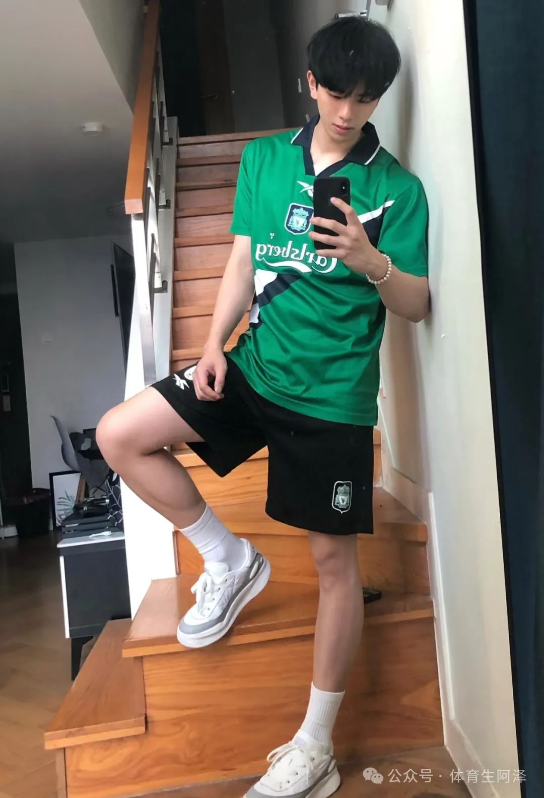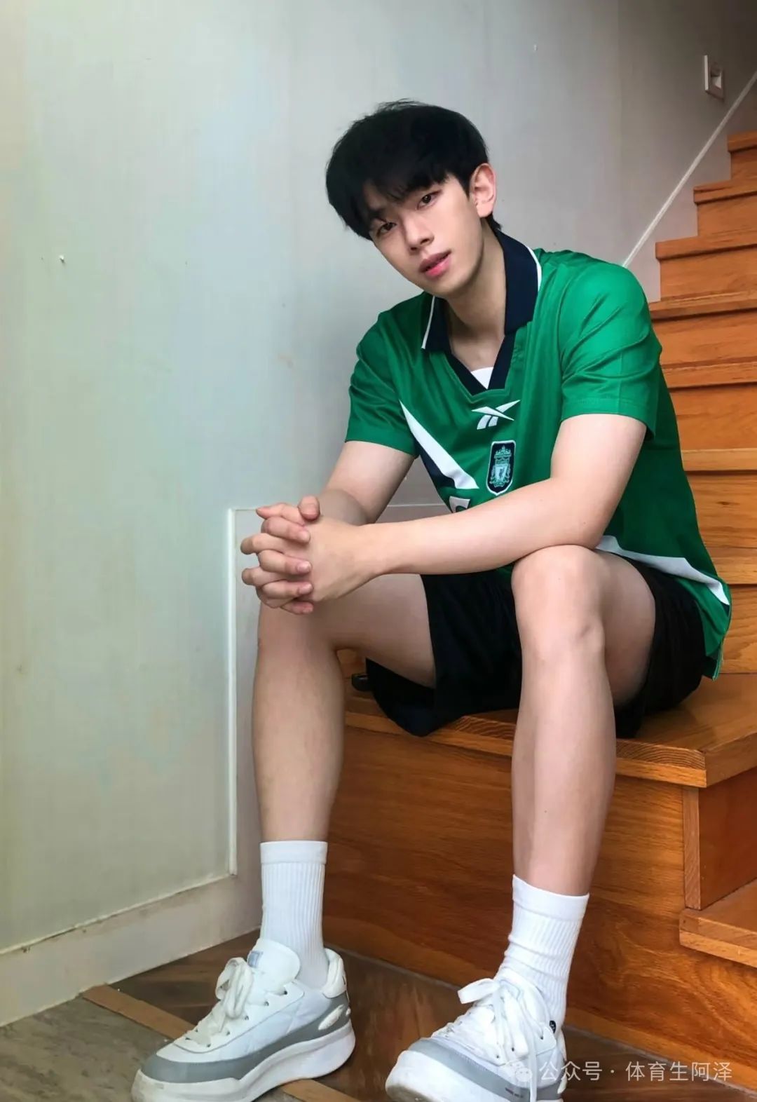有的时候阿泽真的不太懂这么博主的拍照姿势。真的不能理解这些姿势都是怎么想出来的,真的太诱惑了。这个足球小子的照片,大家不是都想和男神在楼梯口做饭吗?这不就来了。