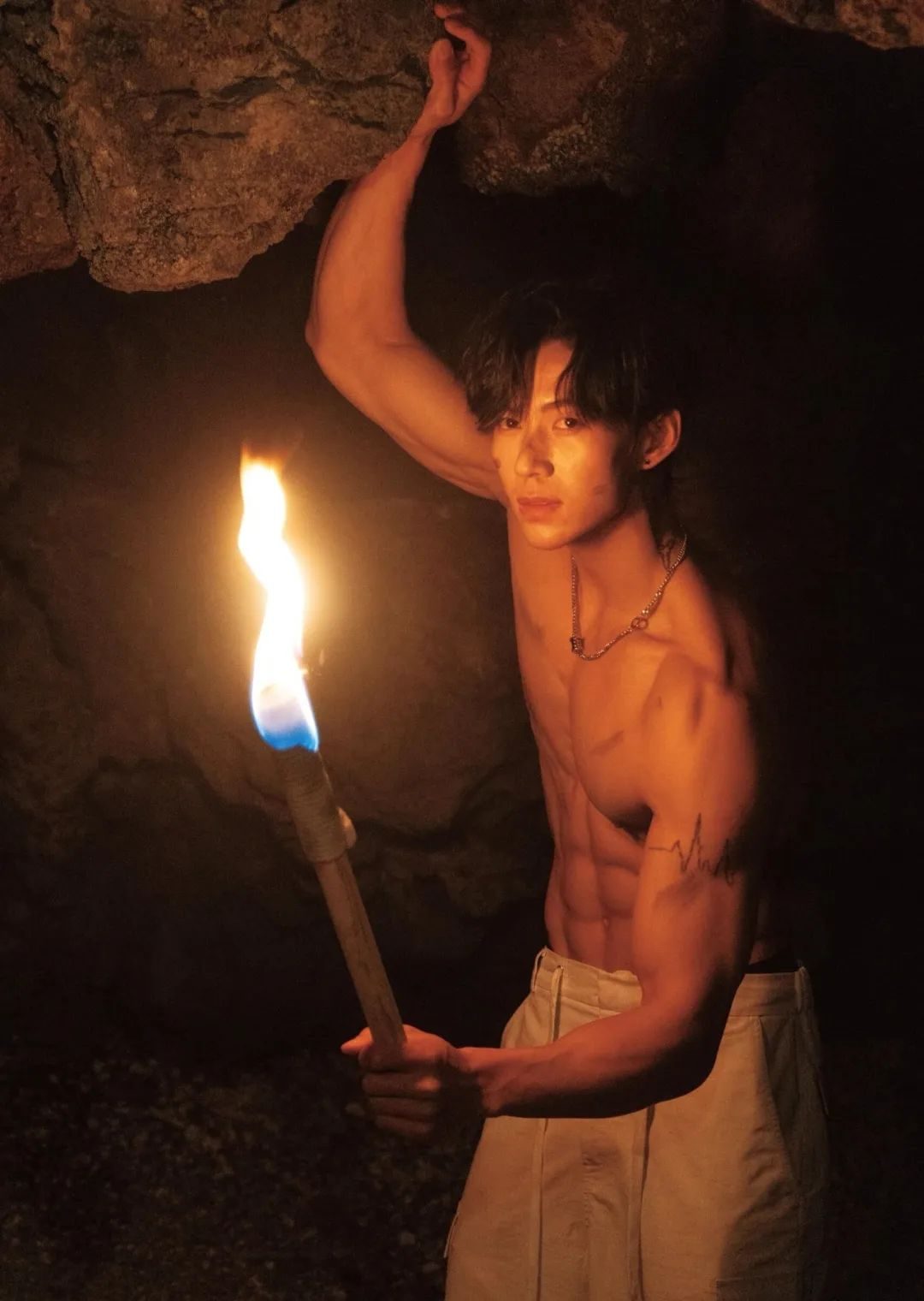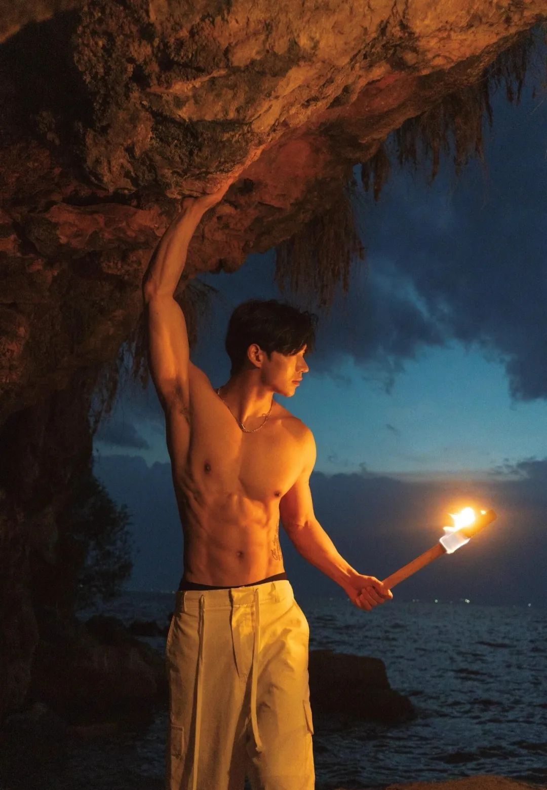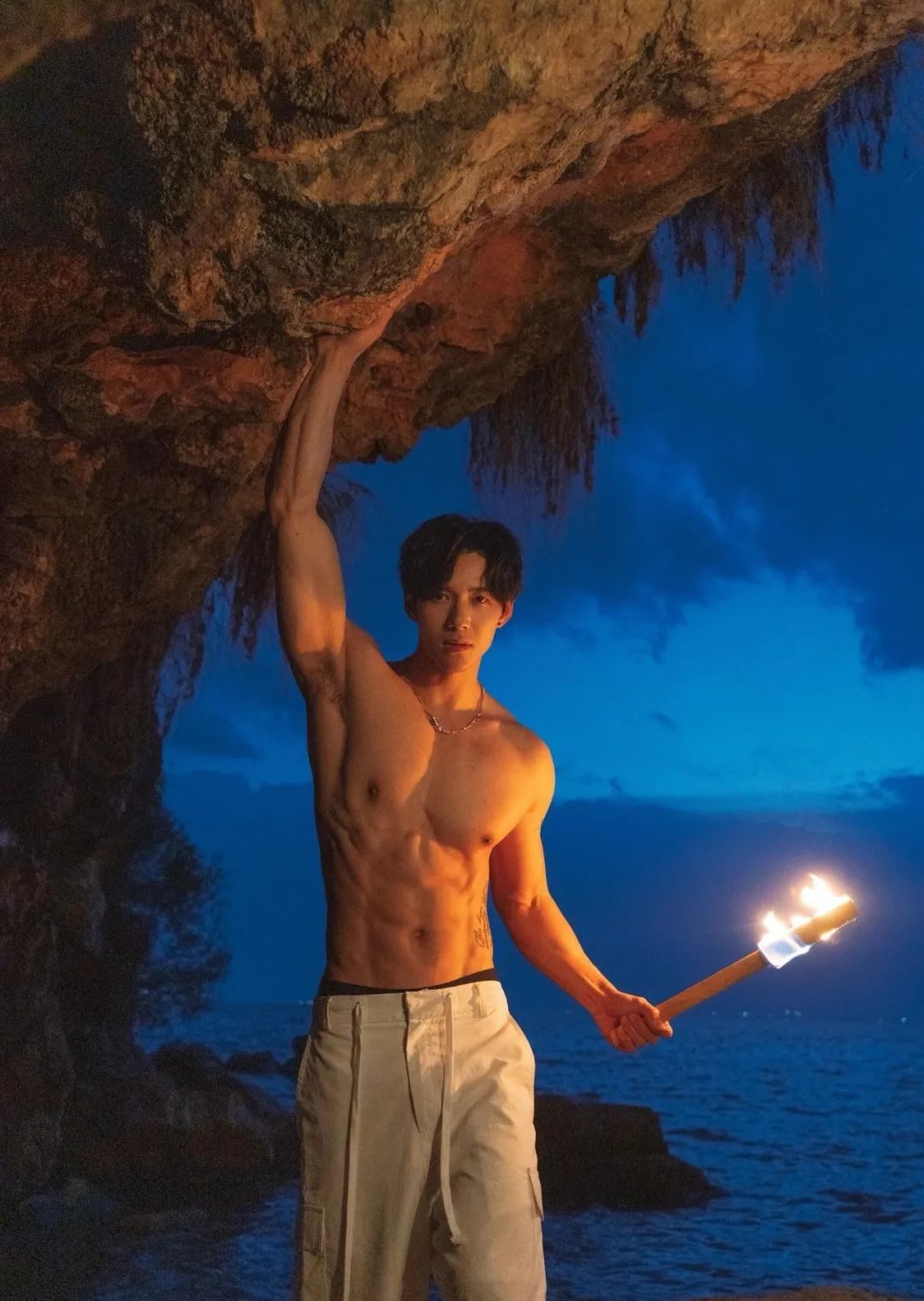 火把只是映衬他的完美身材而已,哪有什么野外求生!