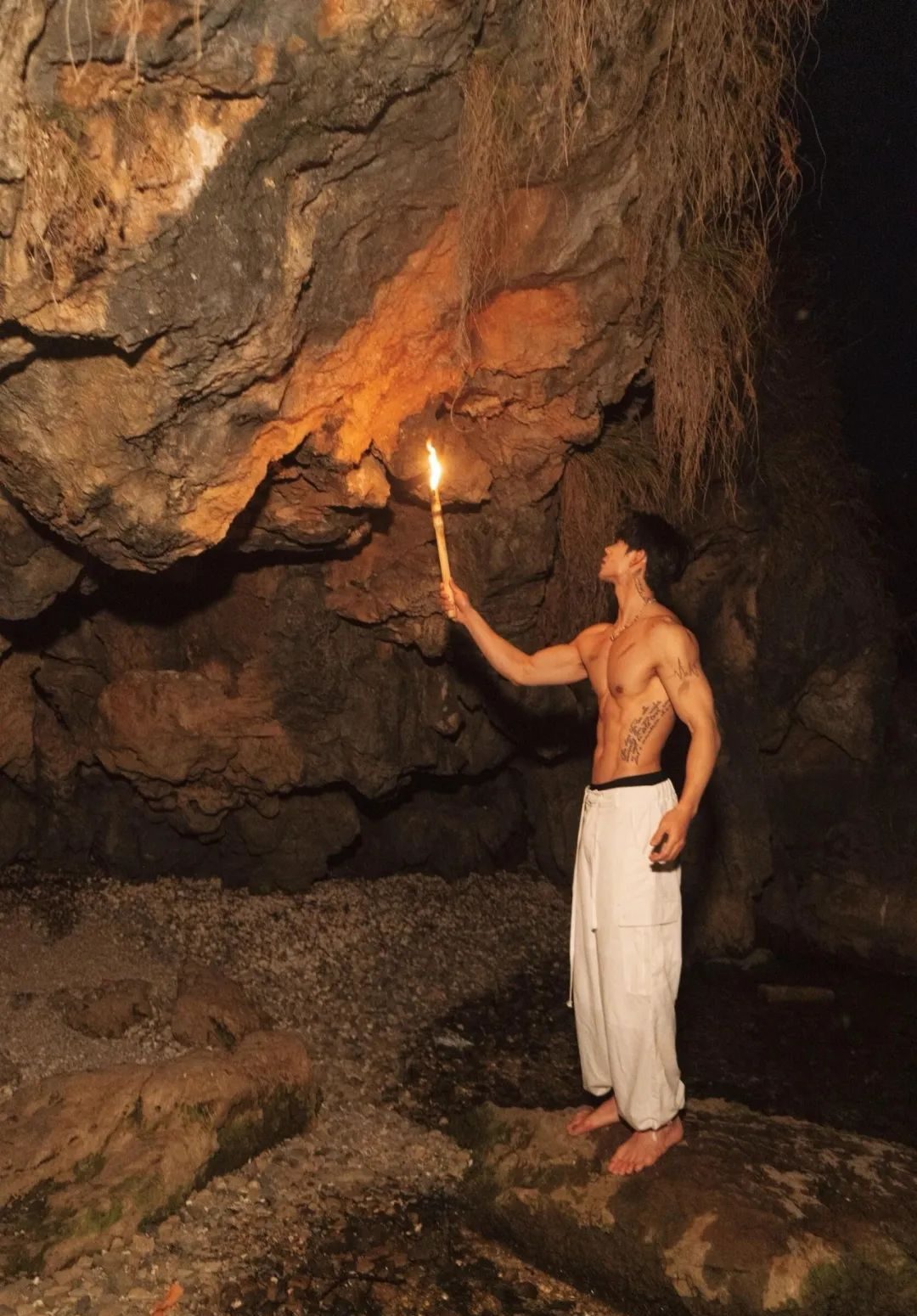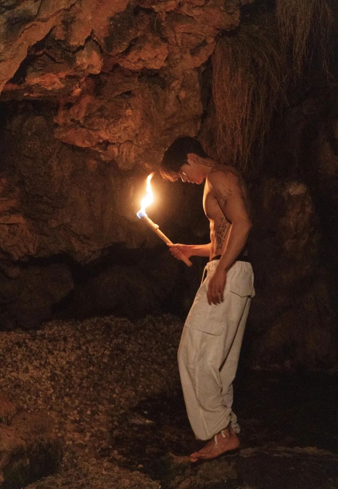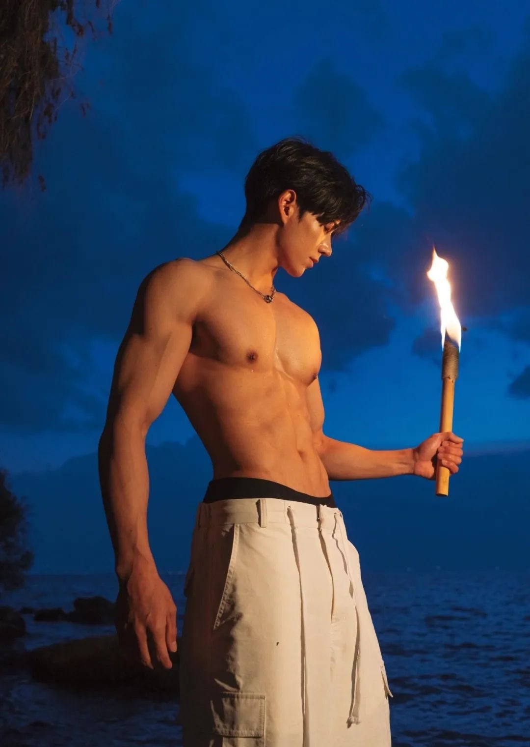 火把只是映衬他的完美身材而已,哪有什么野外求生!