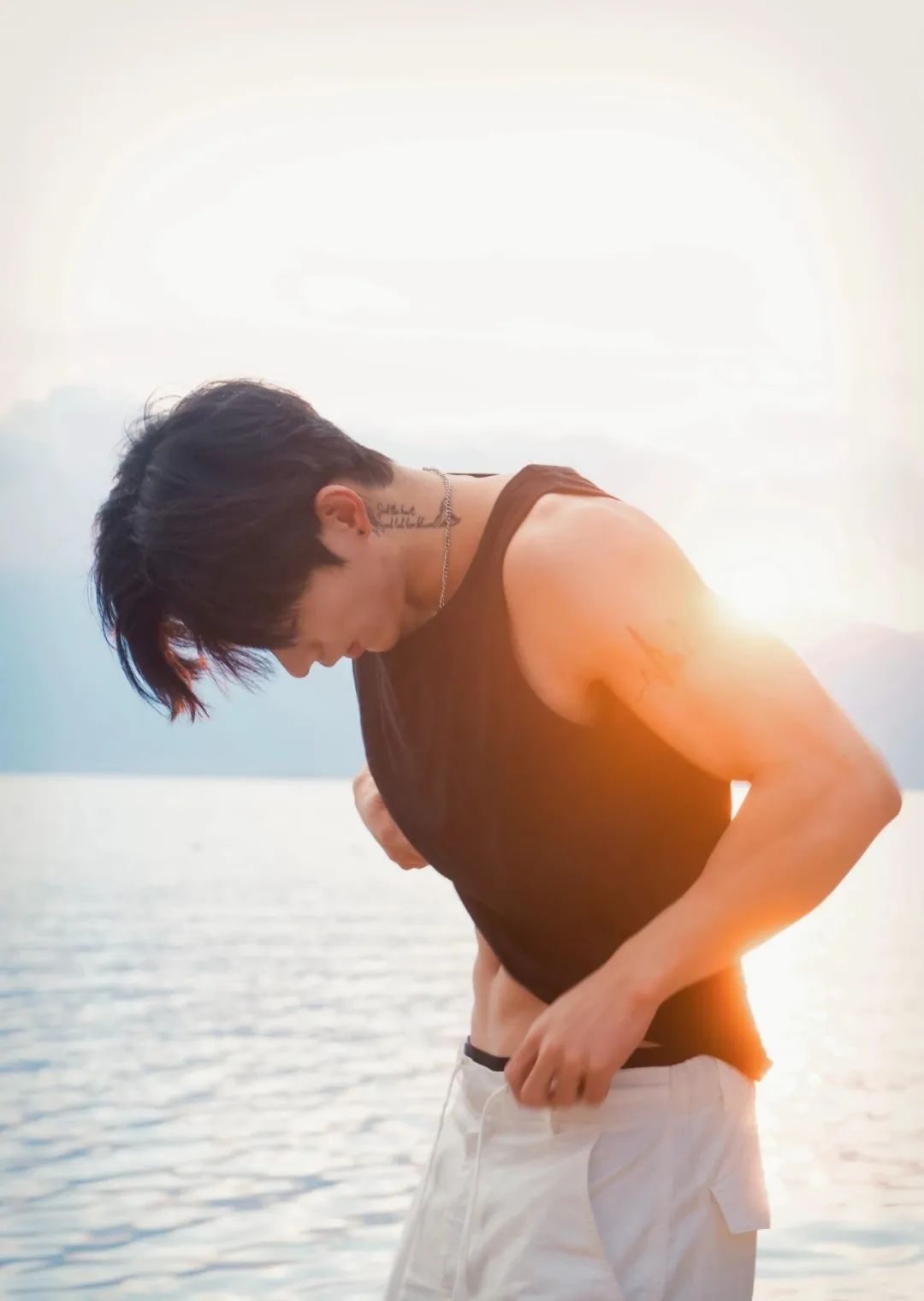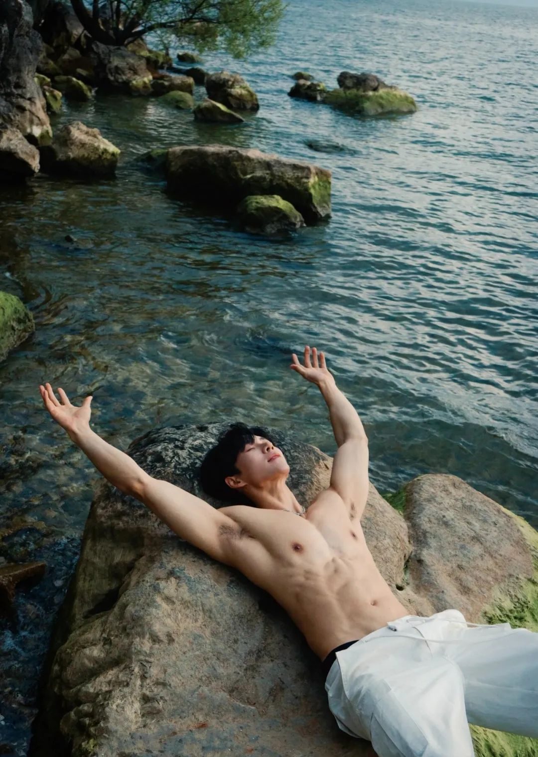 完美的大自然与他身上那满满的肌肉野性荷尔蒙碰撞,诞生出一种别样的魅力。体育生小哥哥在自然背景的衬托下,阳刚之气愈发浓烈,又带着一丝随性与悠然。