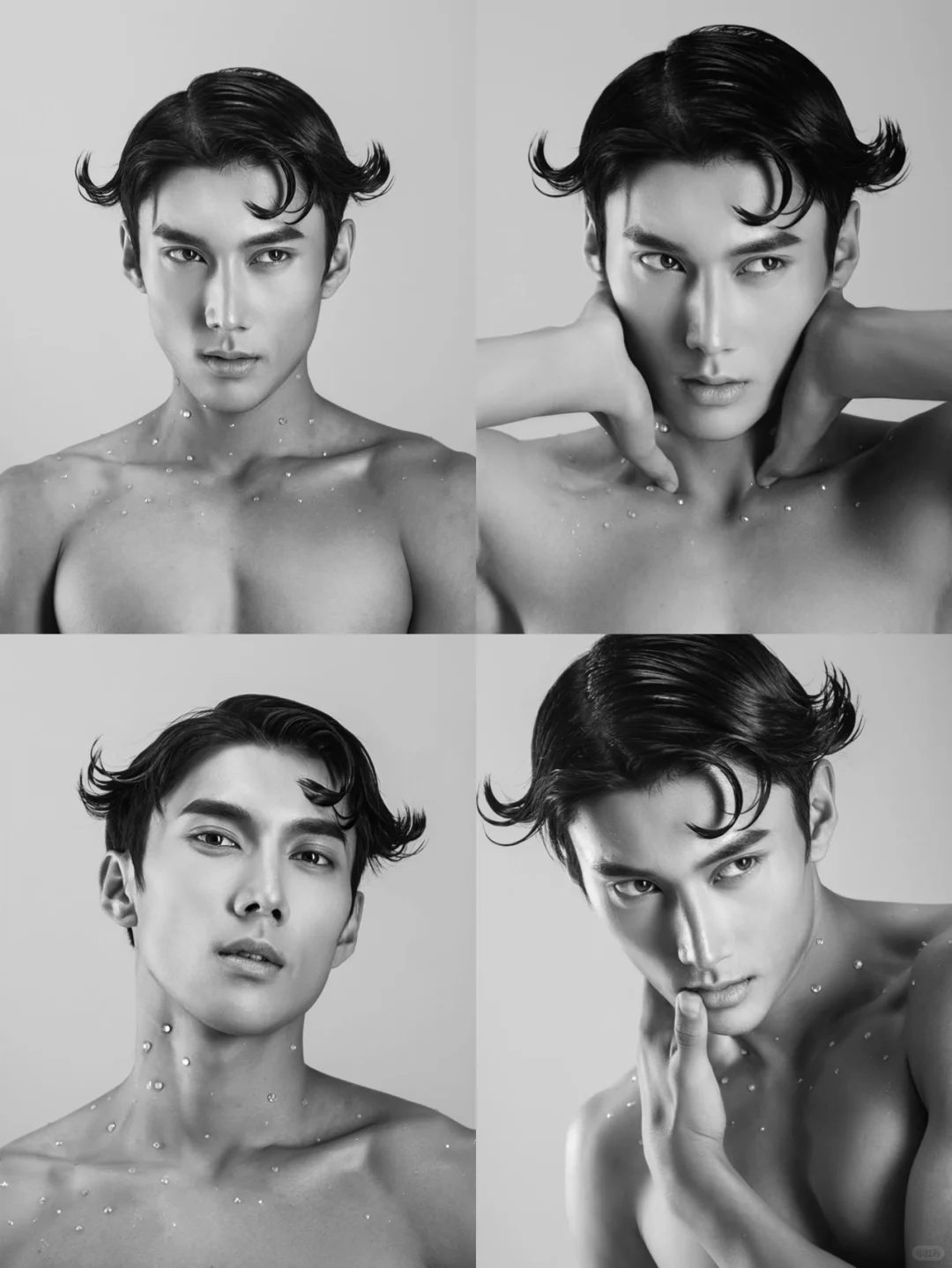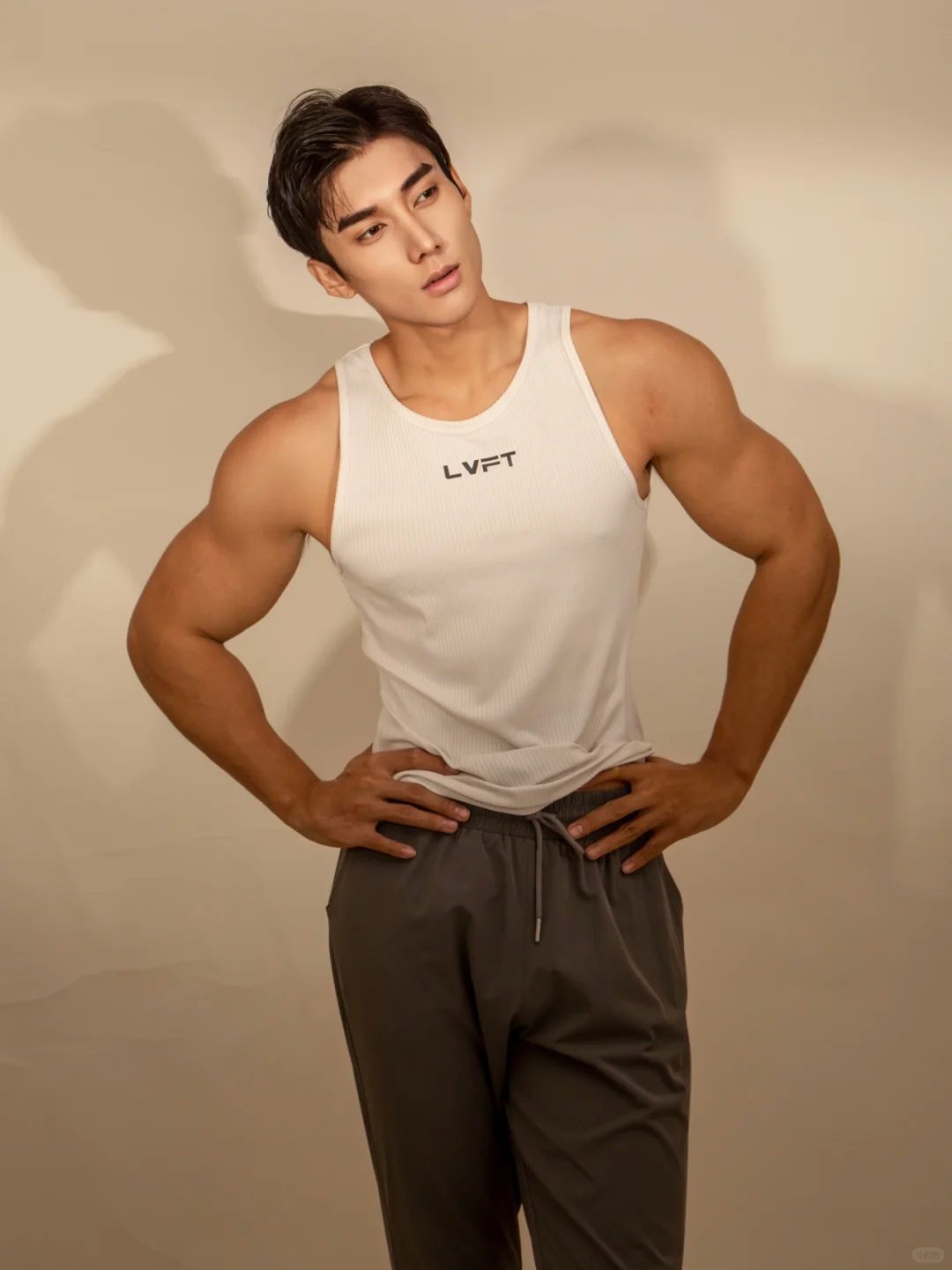 这位小哥哥和我们之前给大家介绍过的模特一样,由于职业的原因,平面模特一般都没有很大块的肌肉。这位小哥哥也是这样,他的肌肉维度不大,但是肌肉的线条比较好看。肩膀比较宽,腰也挺细的。