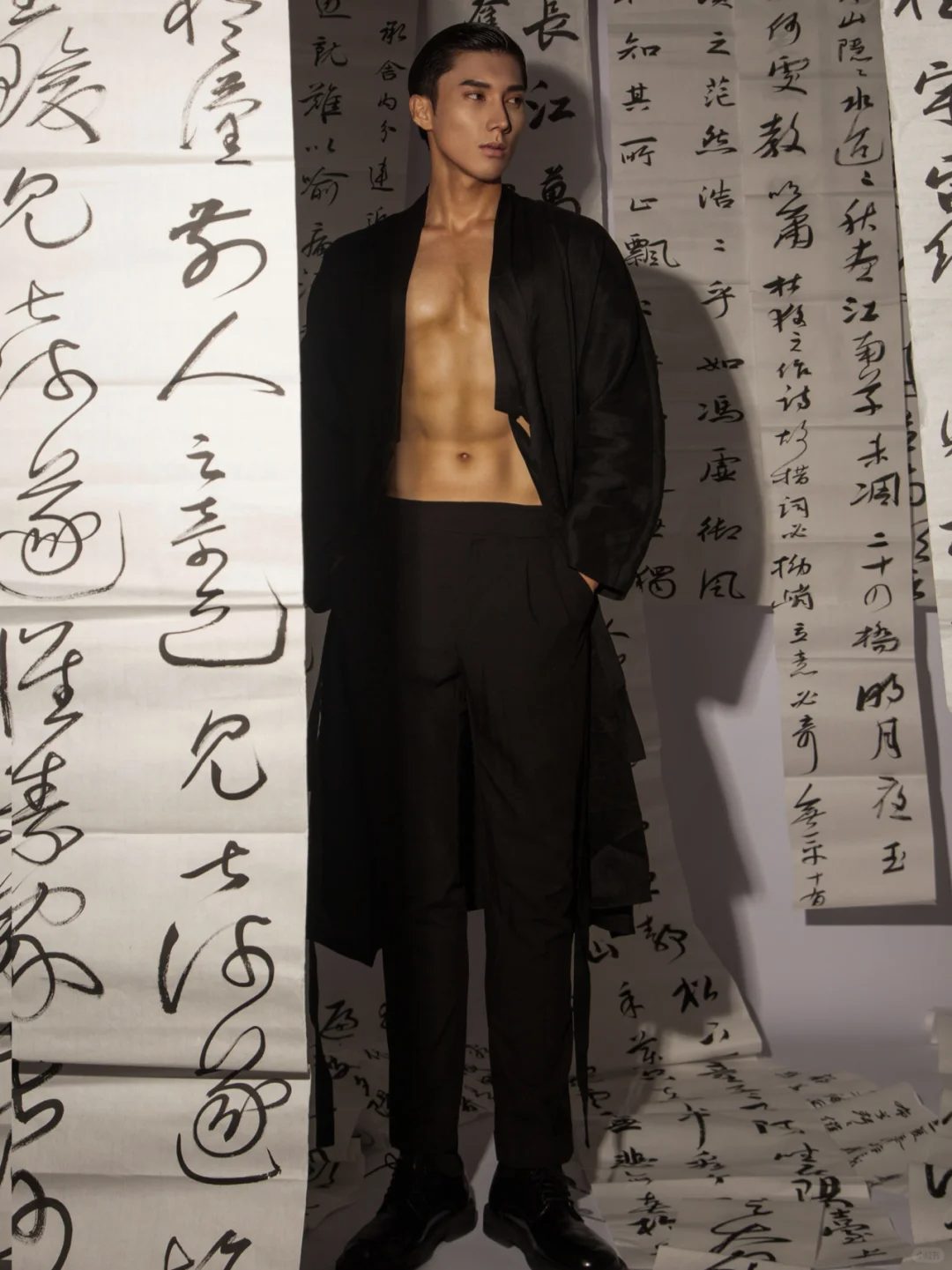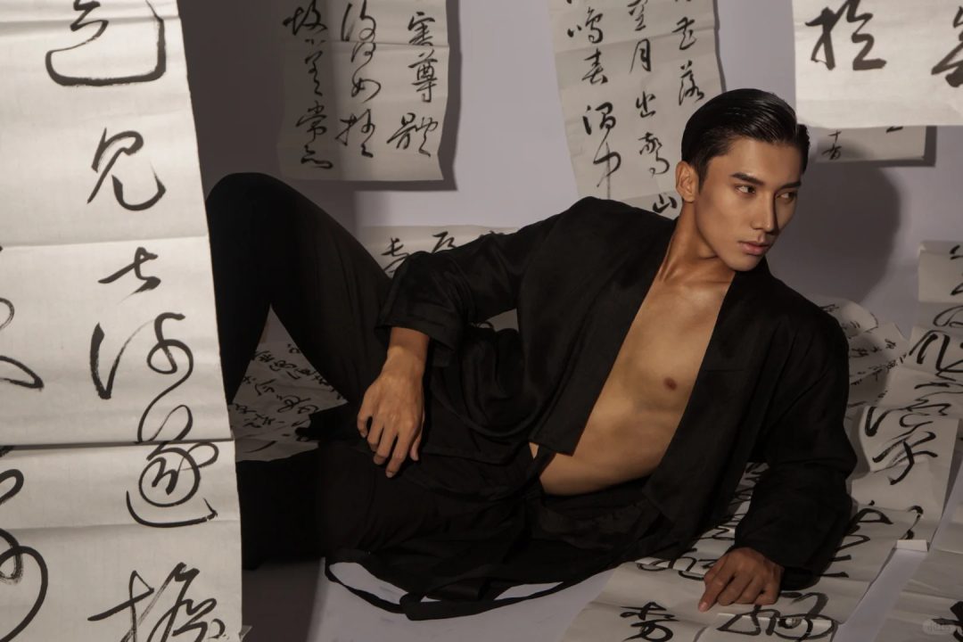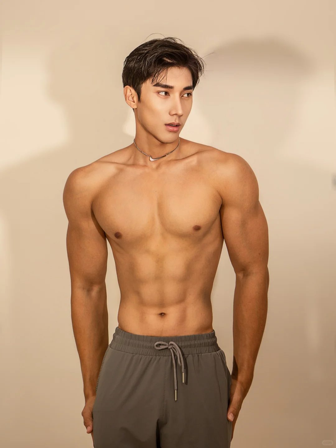 看完时装照,我们再来看看小哥哥脱了上衣拍摄的照片,他的身材也是挺不错的,看得出他有在坚持健身。