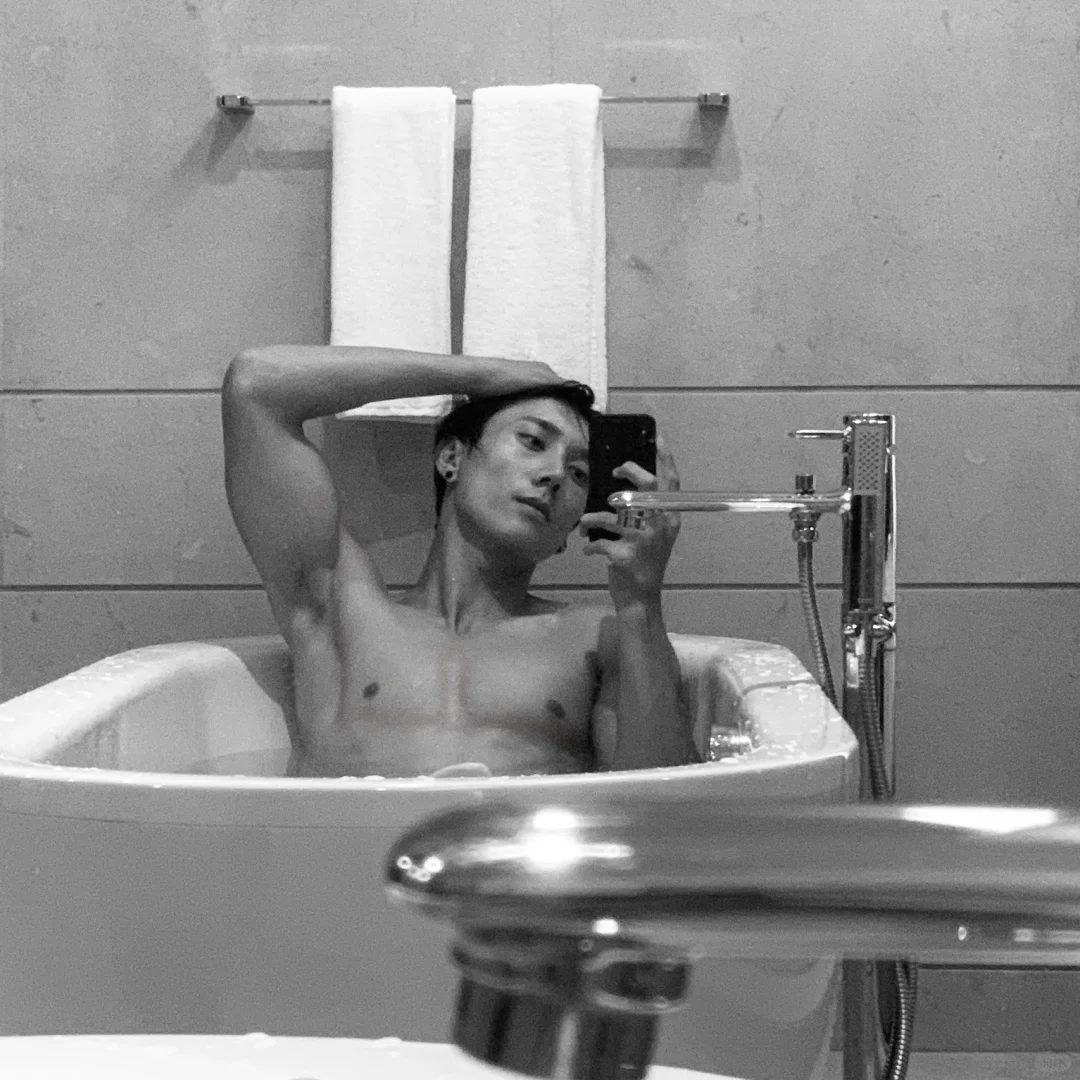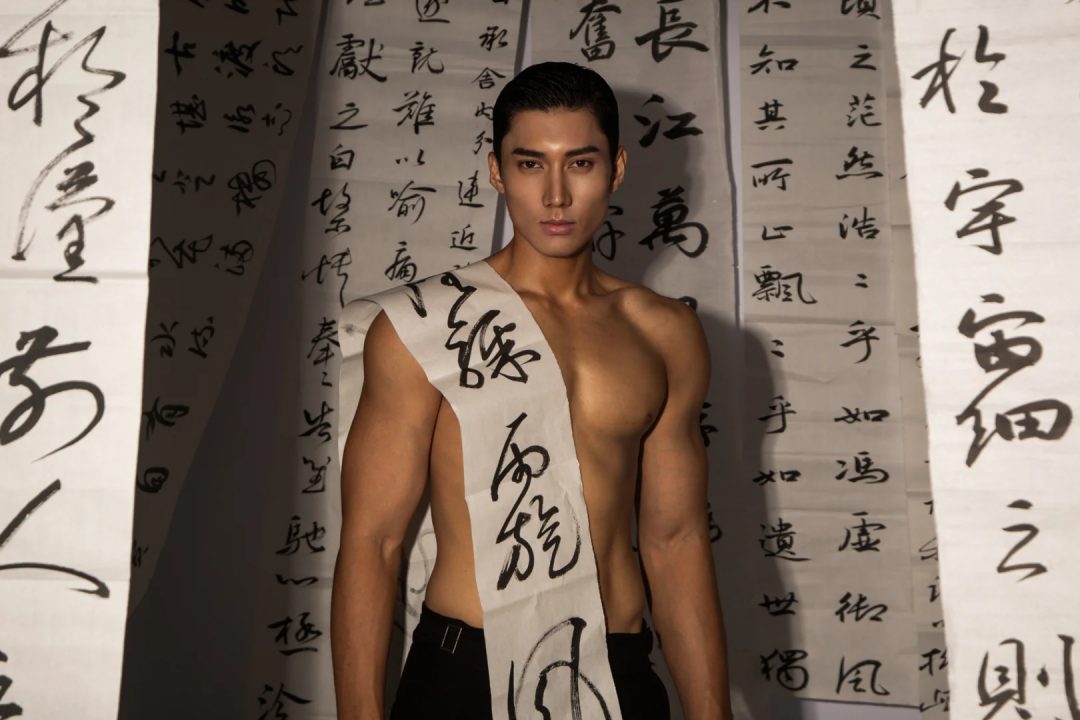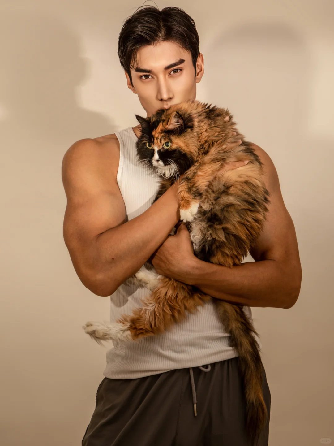 看完时装照,我们再来看看小哥哥脱了上衣拍摄的照片,他的身材也是挺不错的,看得出他有在坚持健身。