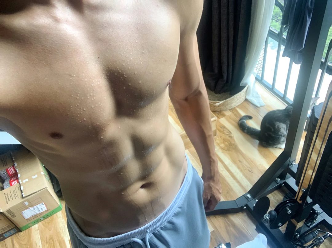 小哥哥的体脂保持的也挺低的,加上锻炼,小哥哥的腹肌也是相当的明显。他的腹肌也算是对称的。