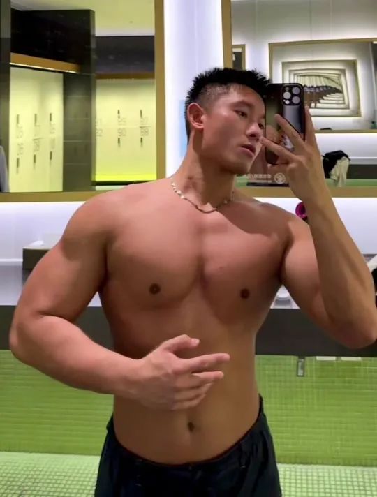 平时在社交媒体上,他偶尔撩起衣服晒出厚实的大胸肌和清晰的腹肌线条,那种肌肉的紧实感完全看得出不是“健身房拍两张照”的水平,而是长期锻炼打下的硬底子。