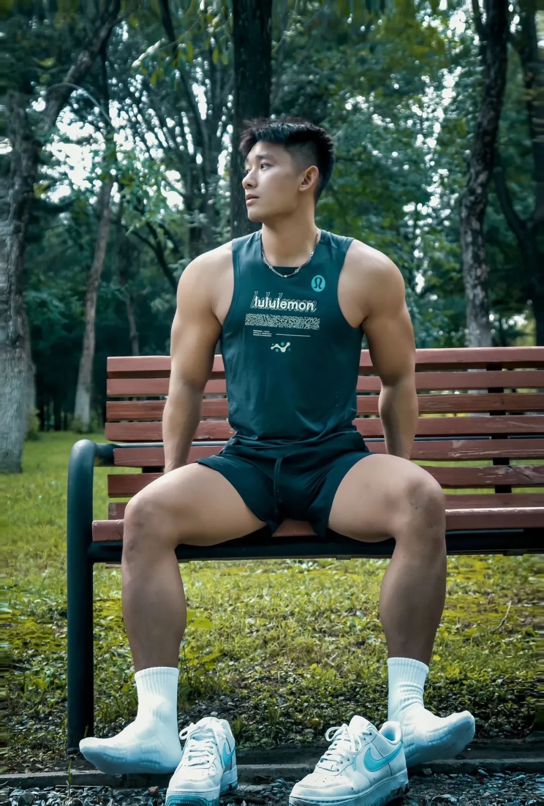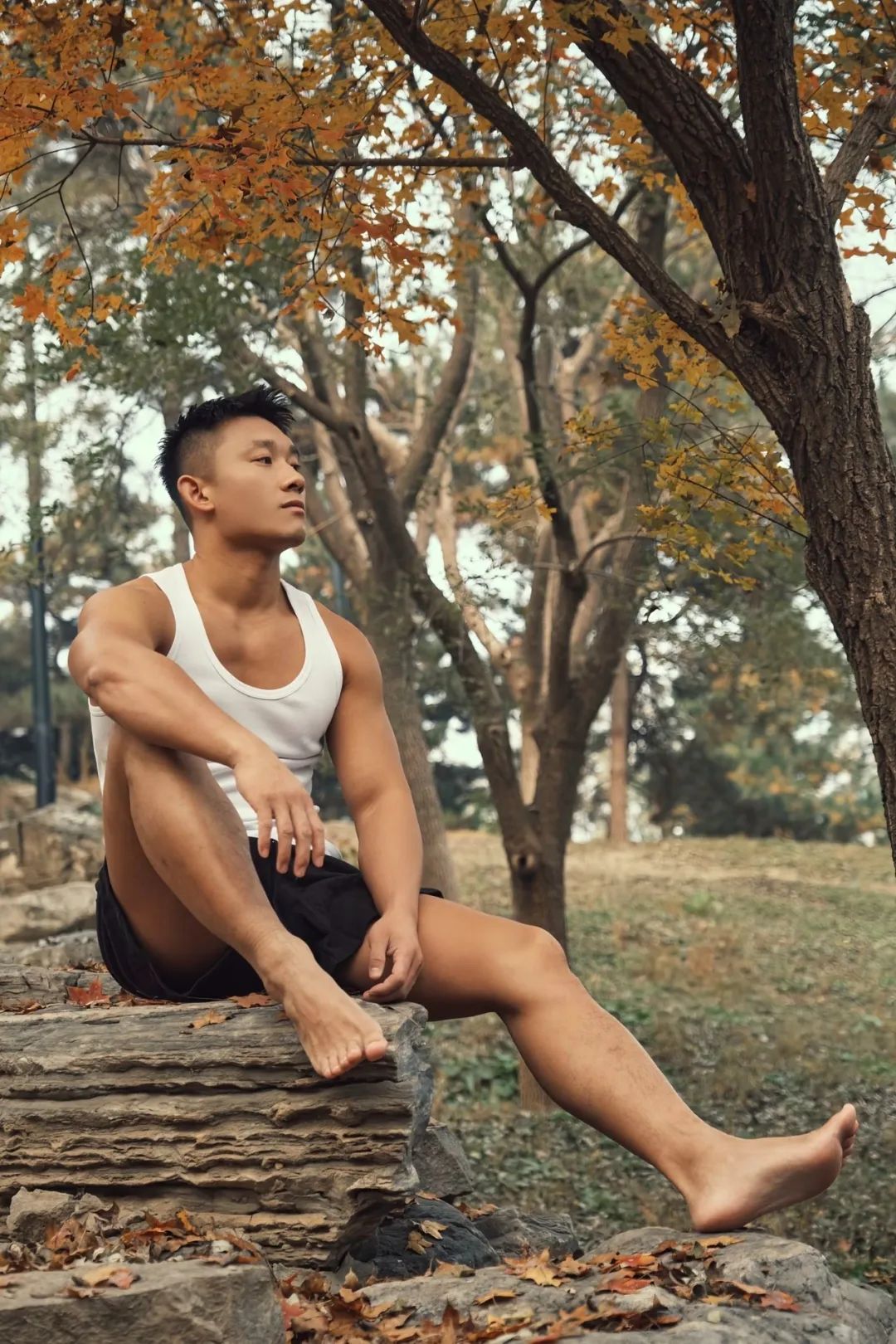 更让人上头的是他的运动穿搭:高弹紧身内搭配运动短裤、再配上黑袜,那双粗壮的大腿简直让人移不开眼。尤其是他晒出的那几张短裤超短、光脚在草地上玩耍的照片——少年的顽皮感、成年人的荷尔蒙,这种反差真是让人疯狂尖叫!