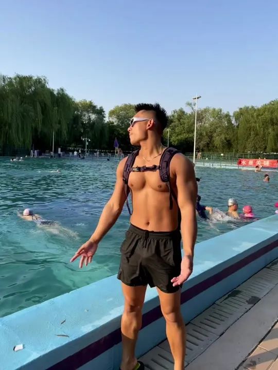 他那一身黑皮肌肉,看起来既野性又性感,尤其在阳光下,身体轮廓如雕刻一般,男人味扑面而来。